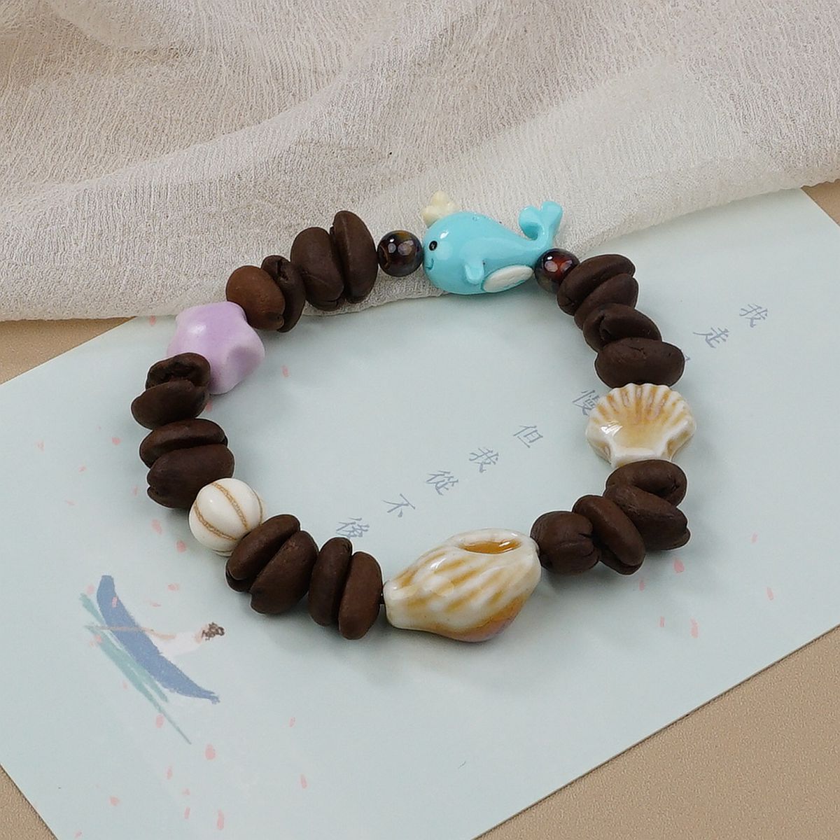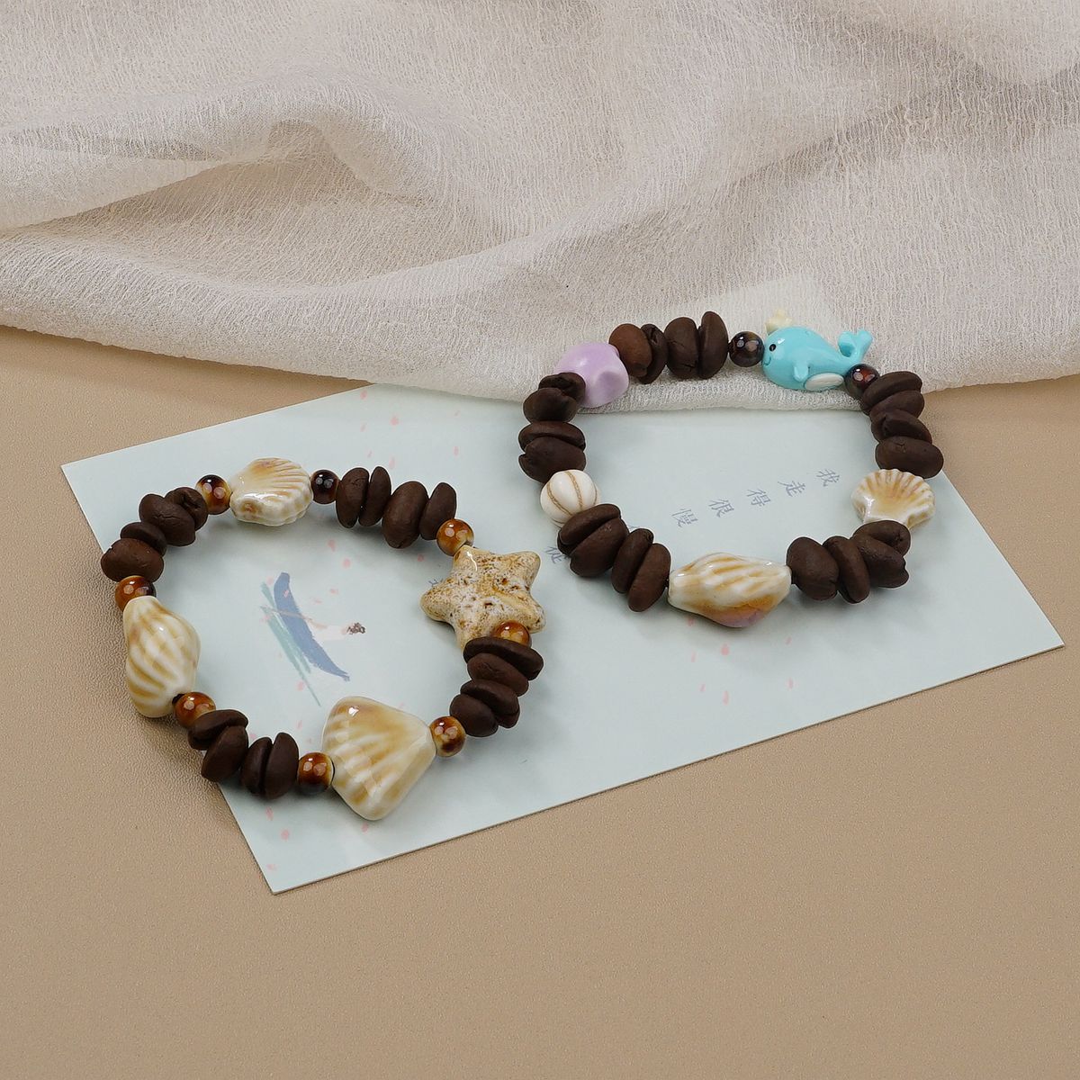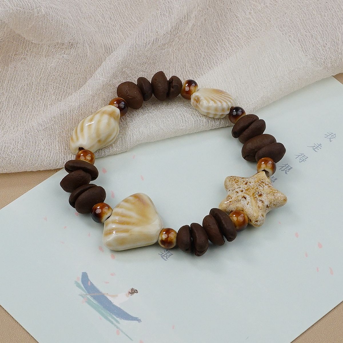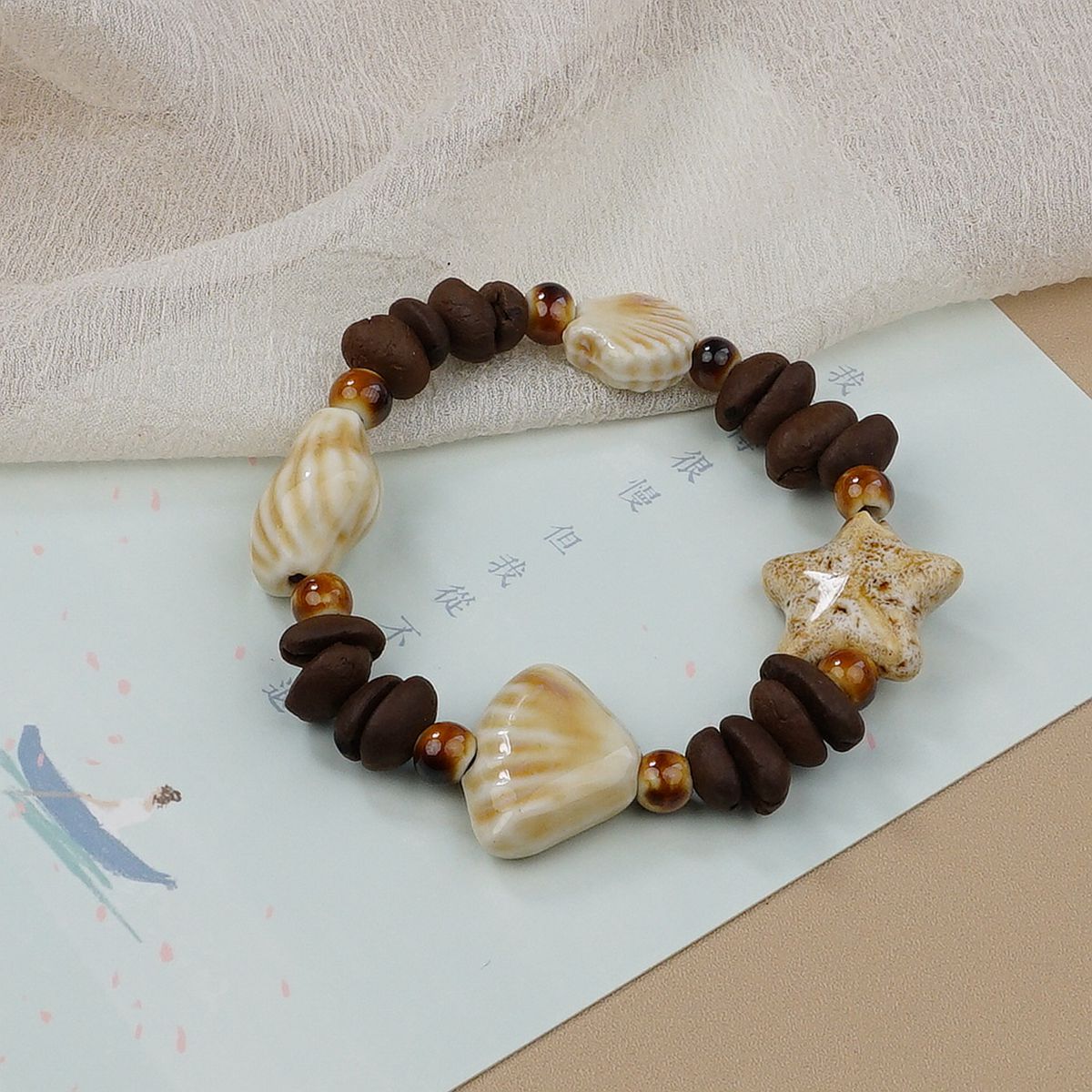 Jingdezhen 커피 콩 세라믹 불가사리 구슬 팔찌 독특한 디자인 고급 감각 팔찌 커플의 가장 친한 친구 보석스토어 가기