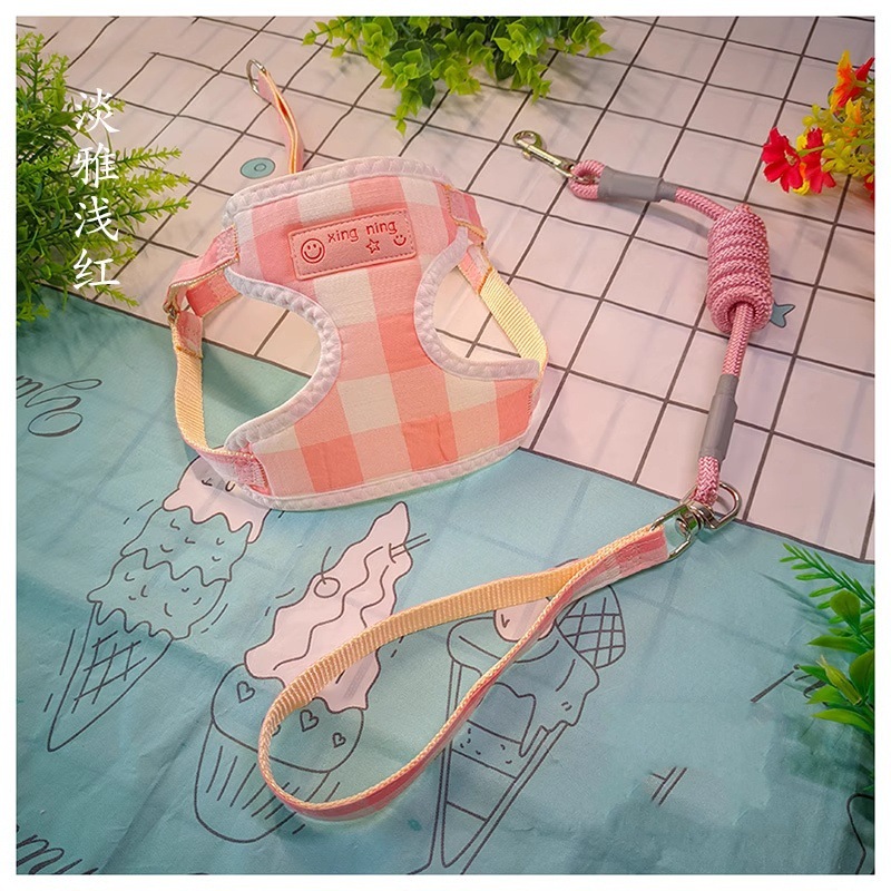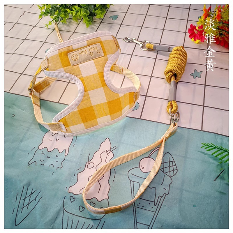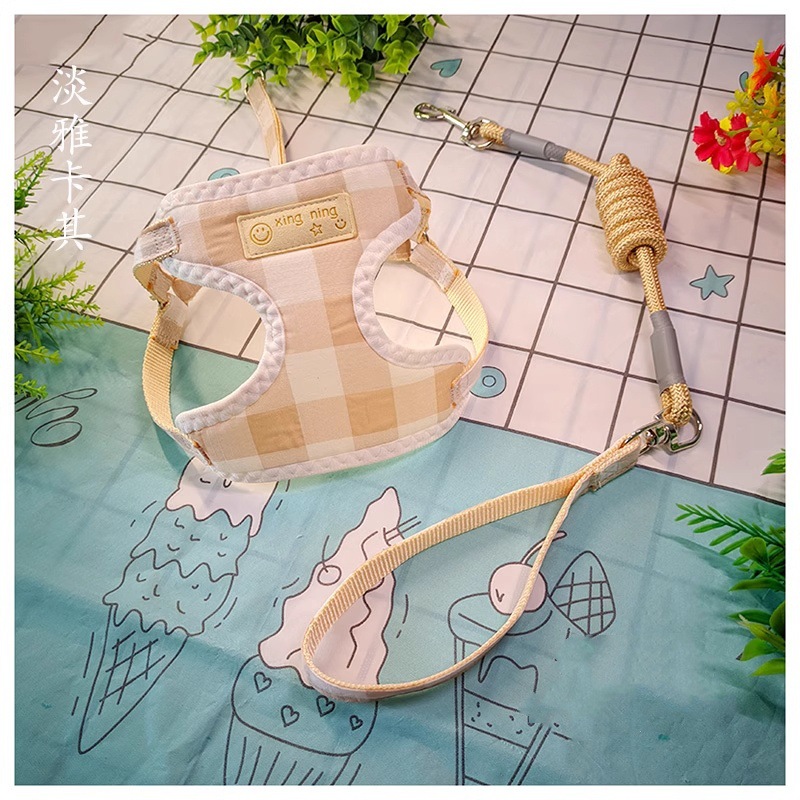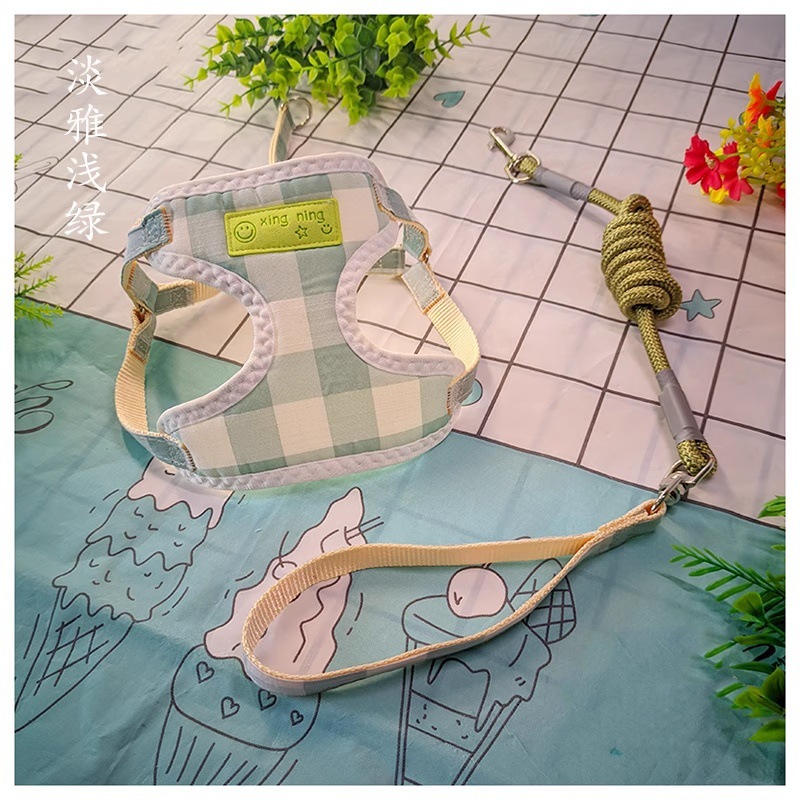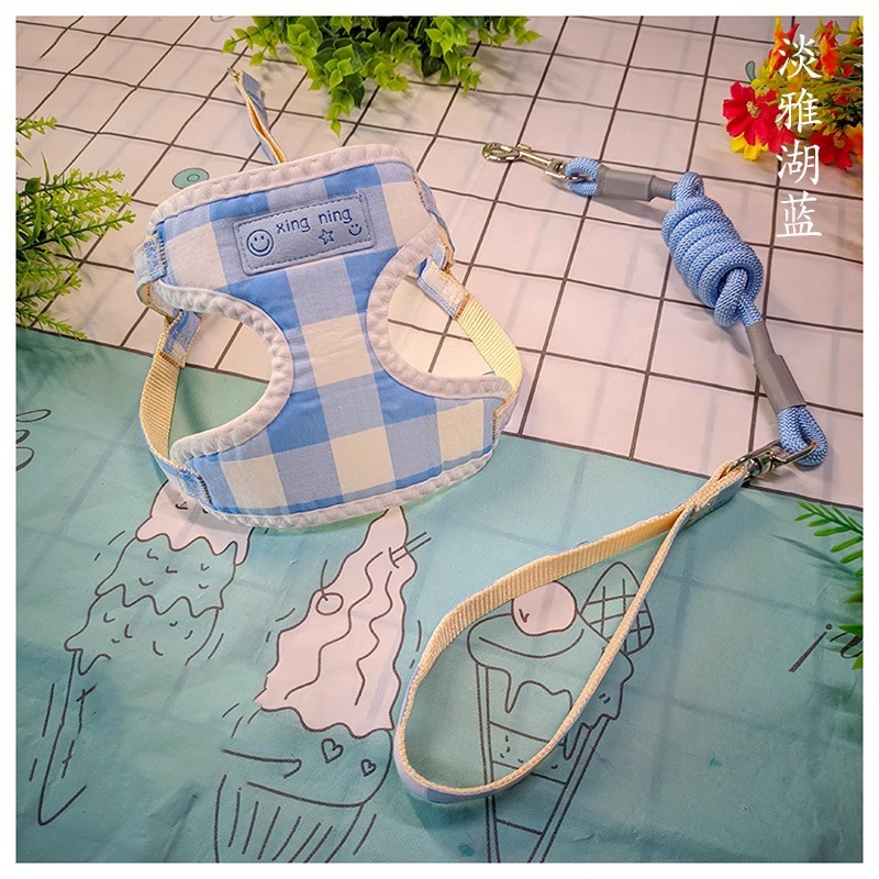 새로운 개 가죽끈 격자 무늬 하네스 조끼 스타일 이탈 방지 메쉬 백 외출 개 가죽끈 개 가죽끈 애완 동물 용품