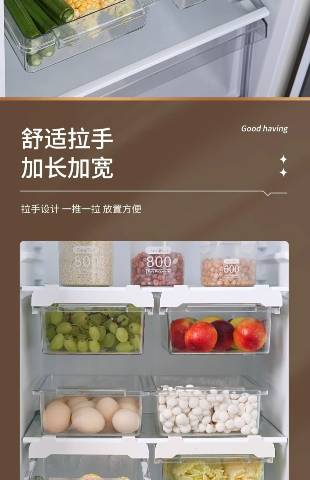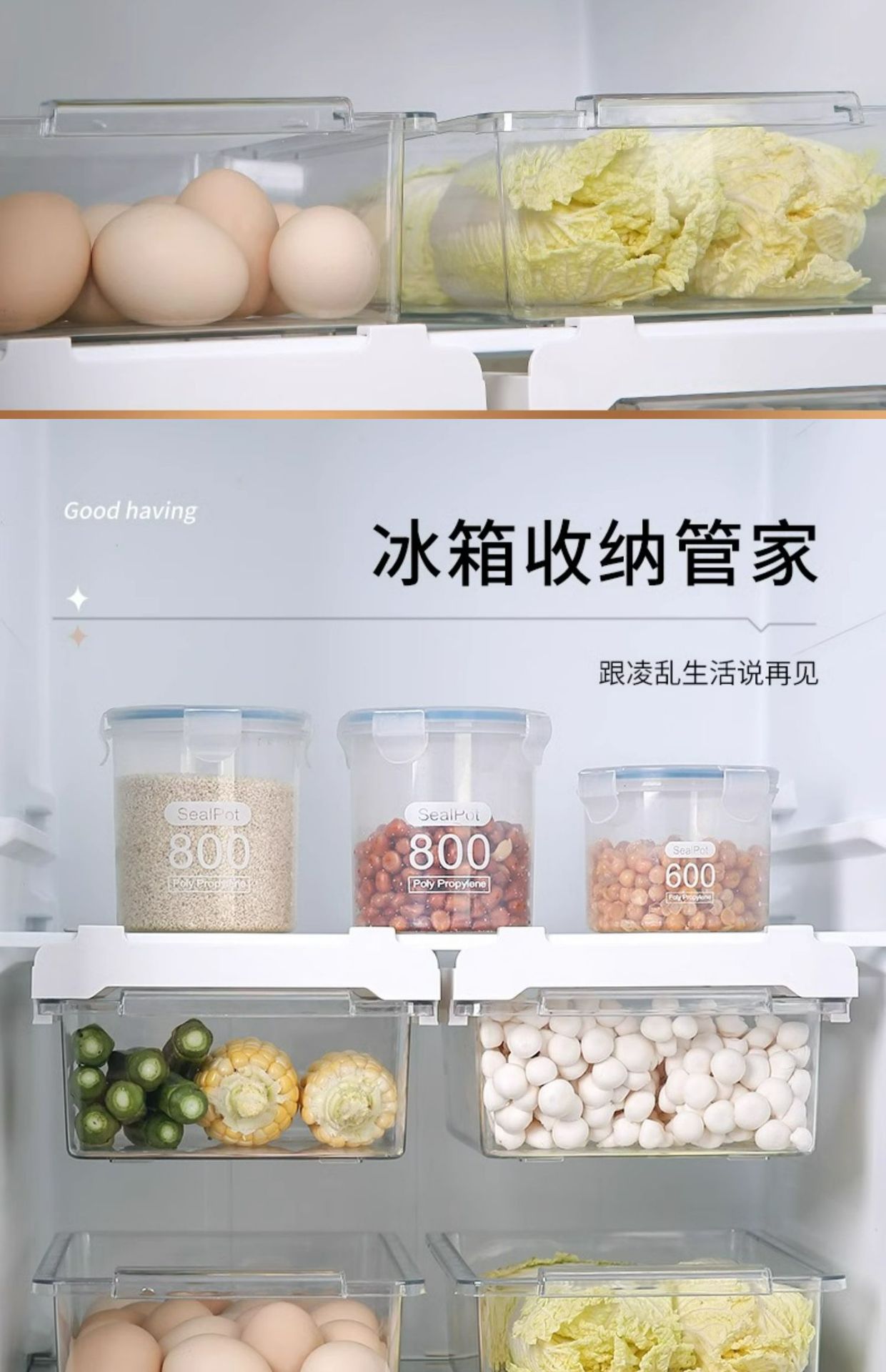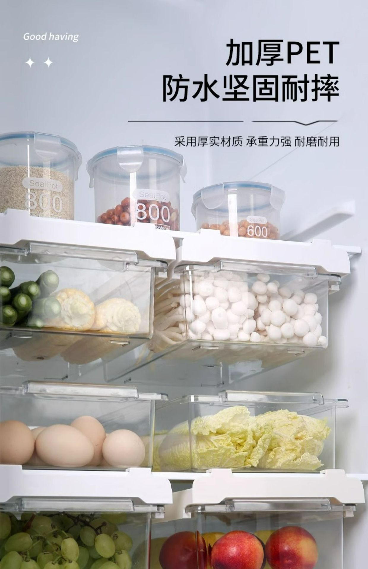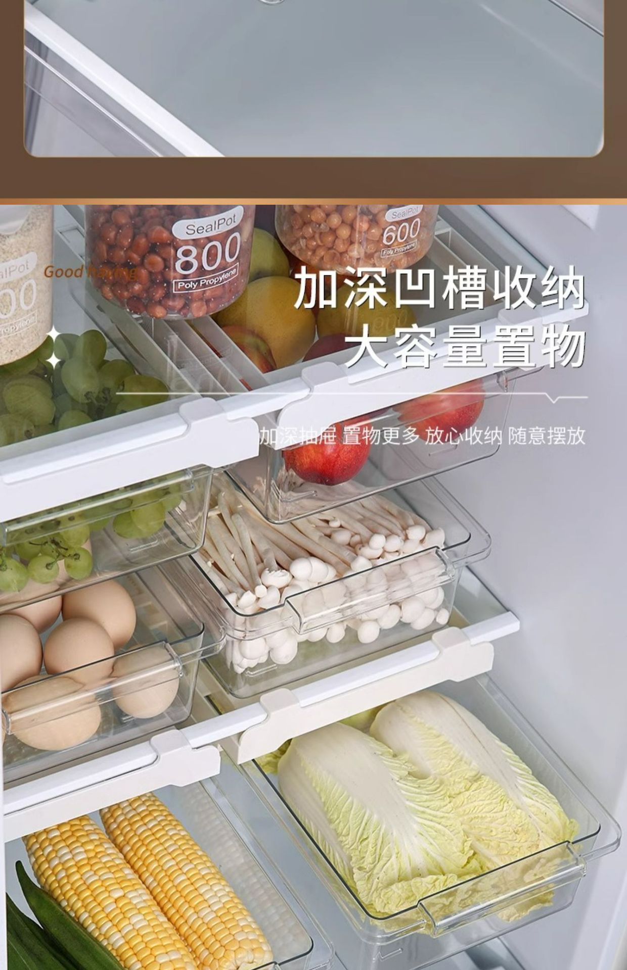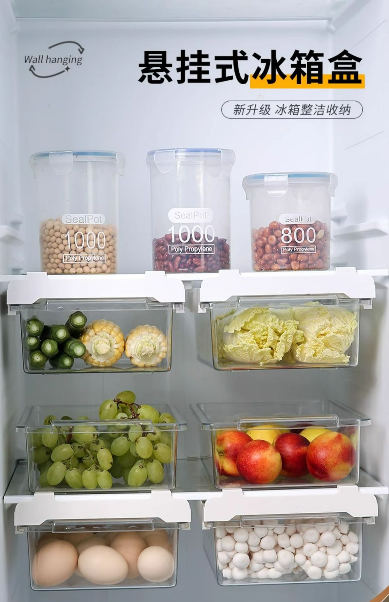 냉장고 서랍 저장 상자 주방 신선한 보관 상자 파티션 매달려 보관 마무리 인공물 계란 저장 상자 저장 랙