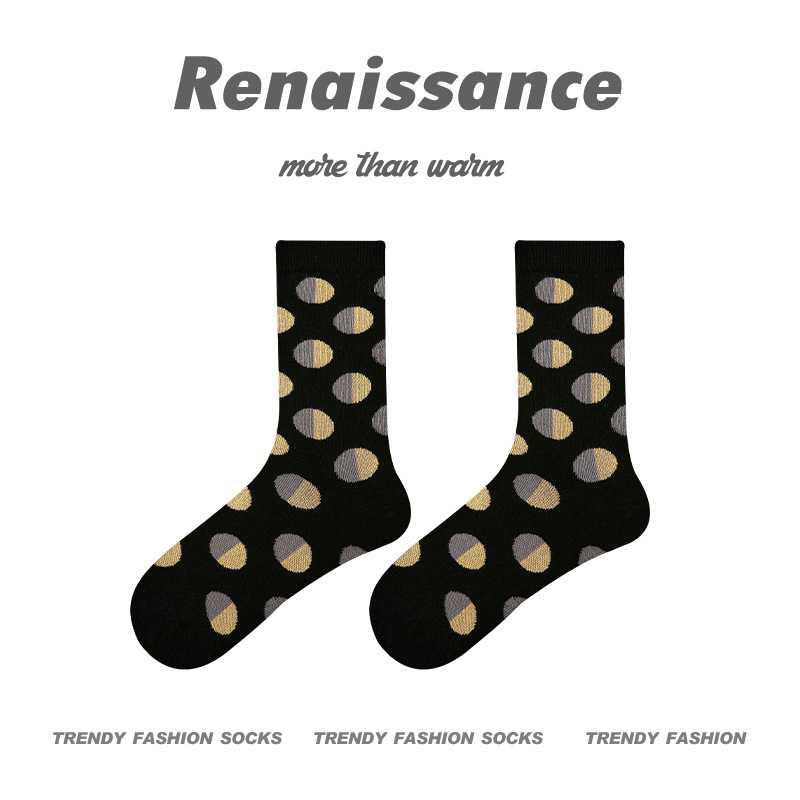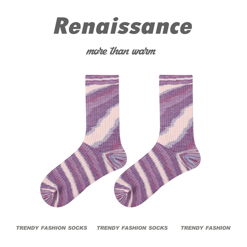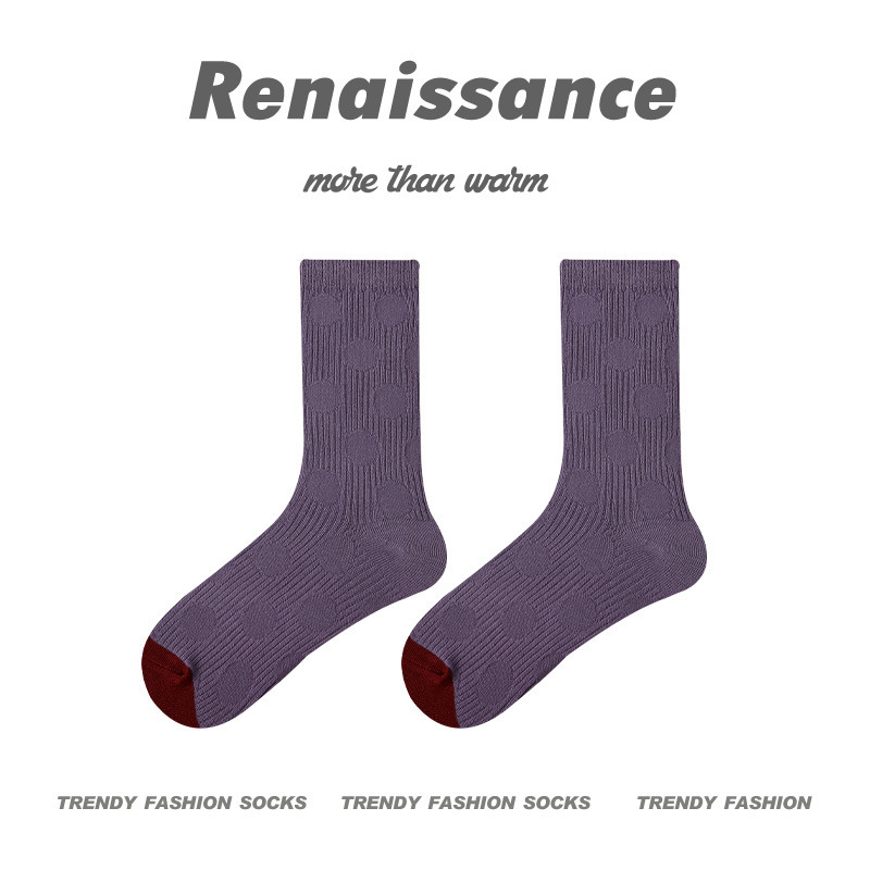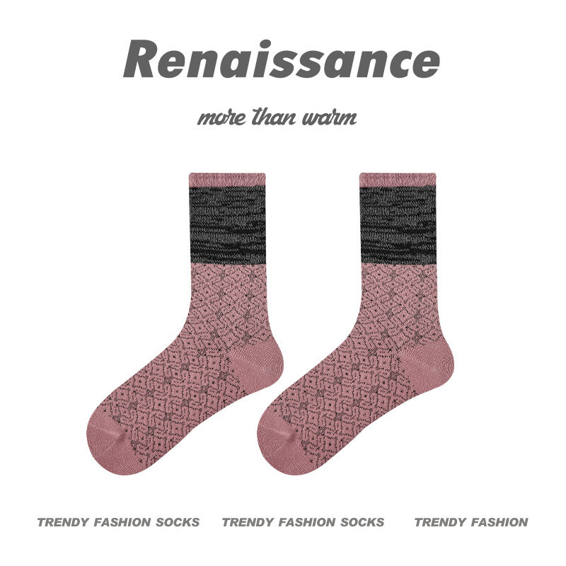 여성용 르네상스 울 양말, 봄, 가을 따뜻한 종아리 양말, 가을 여성용 뼈없는 대비 색상 양말스토어 가기