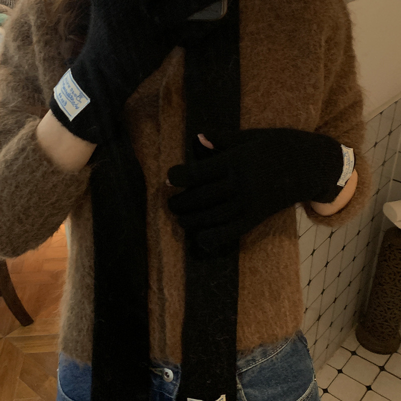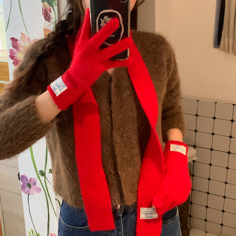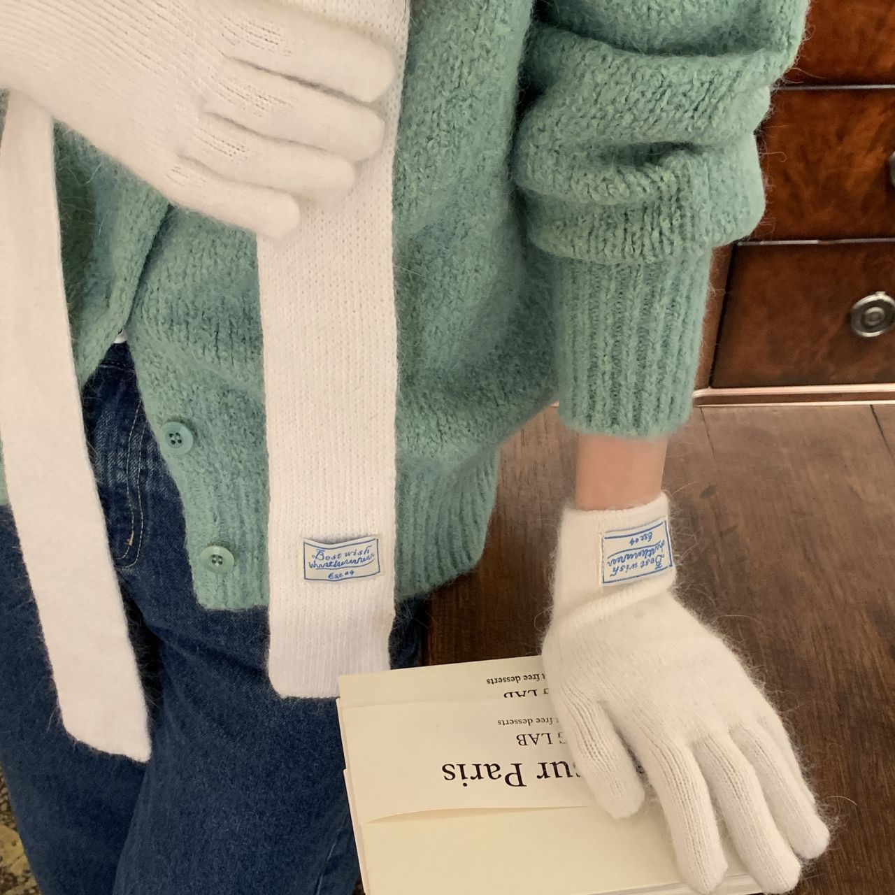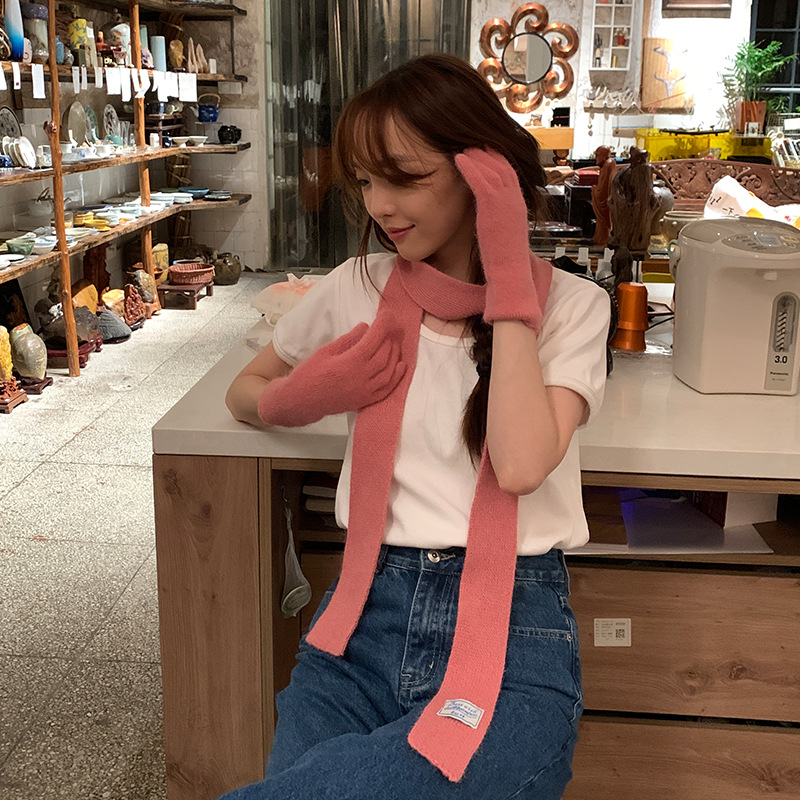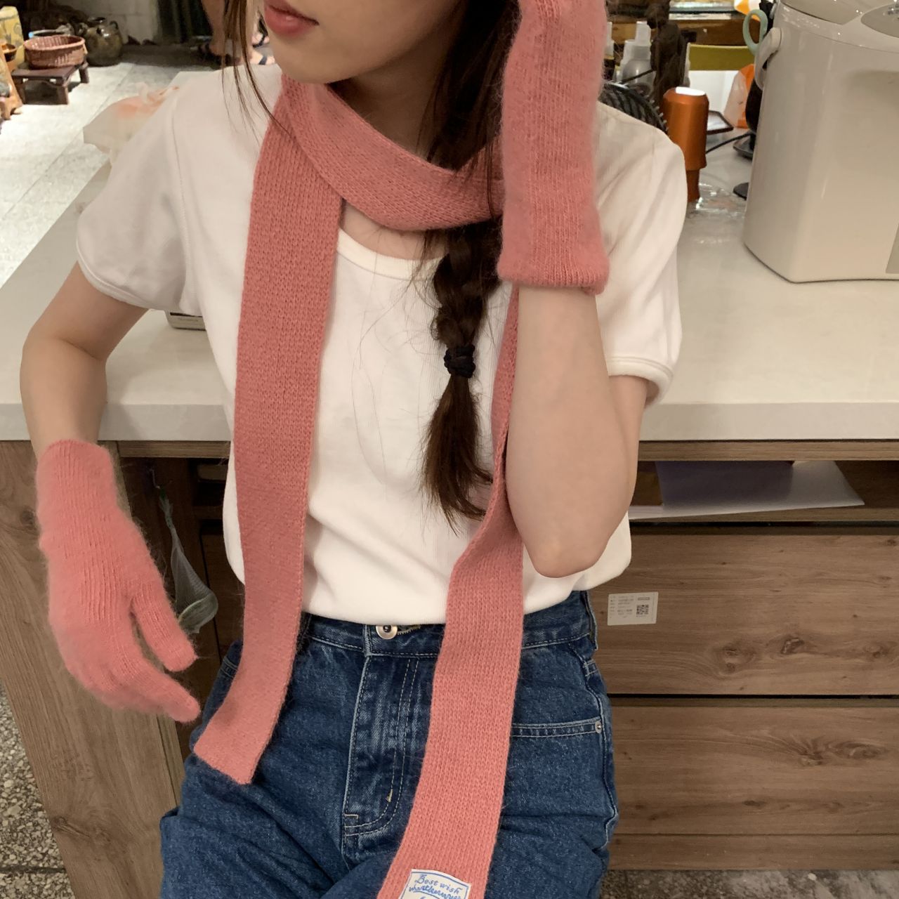 일본 스타일 가을과 겨울 복고풍 부드러운 왁스 긴 얇은 스카프 장갑 세트 모든 경기 모양 장식 니트 좁은 스카프
