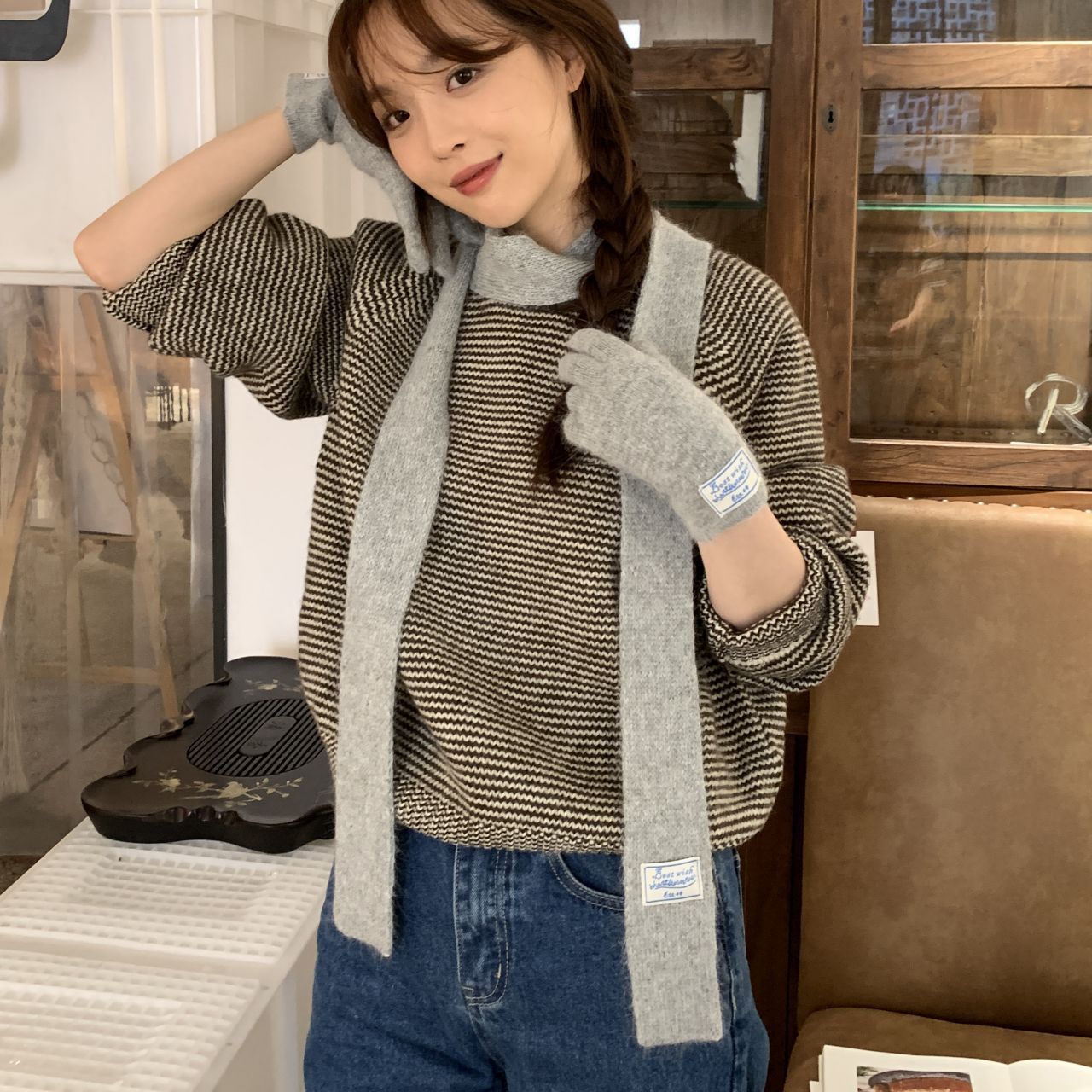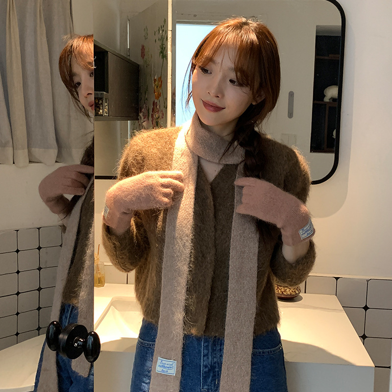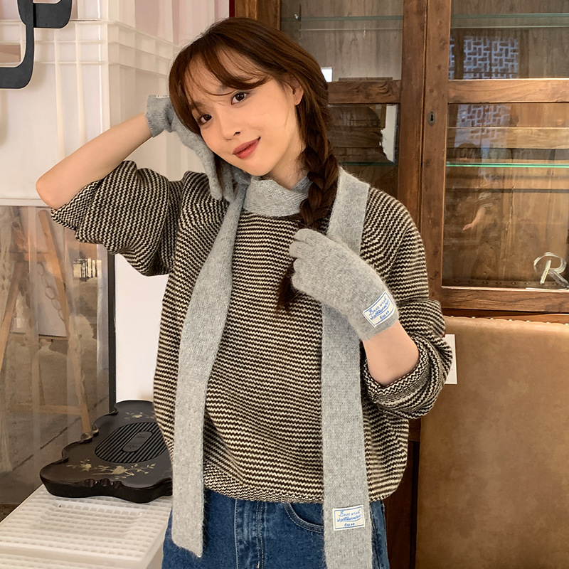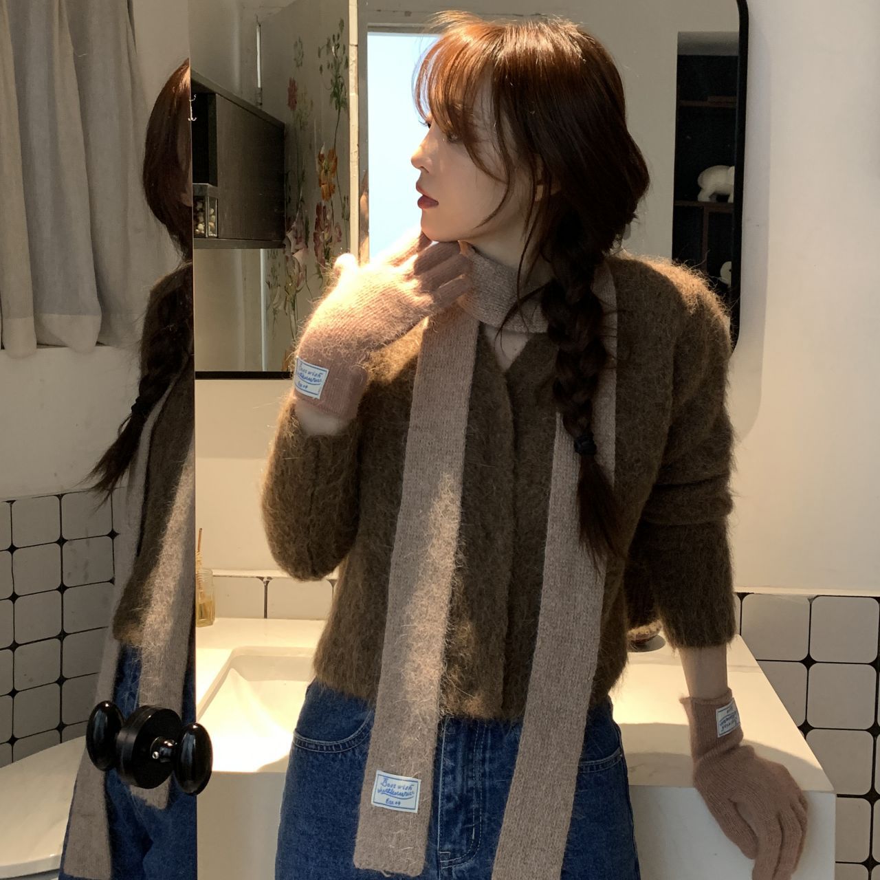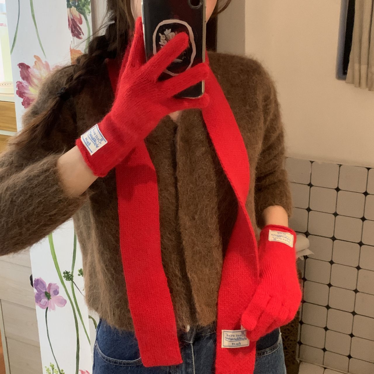 일본 스타일 가을과 겨울 복고풍 부드러운 왁스 긴 얇은 스카프 장갑 세트 모든 경기 모양 장식 니트 좁은 스카프