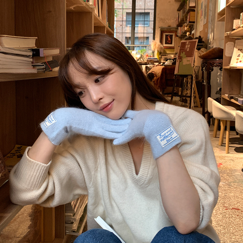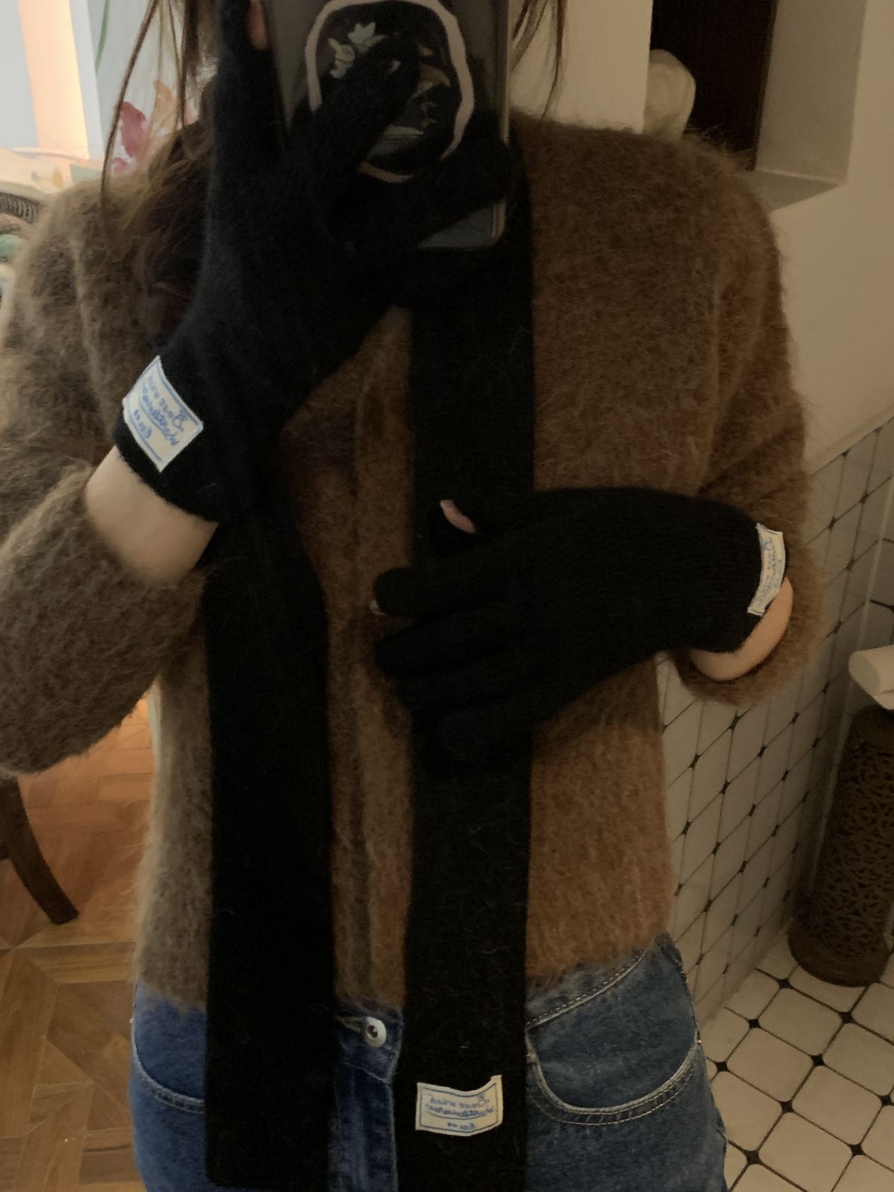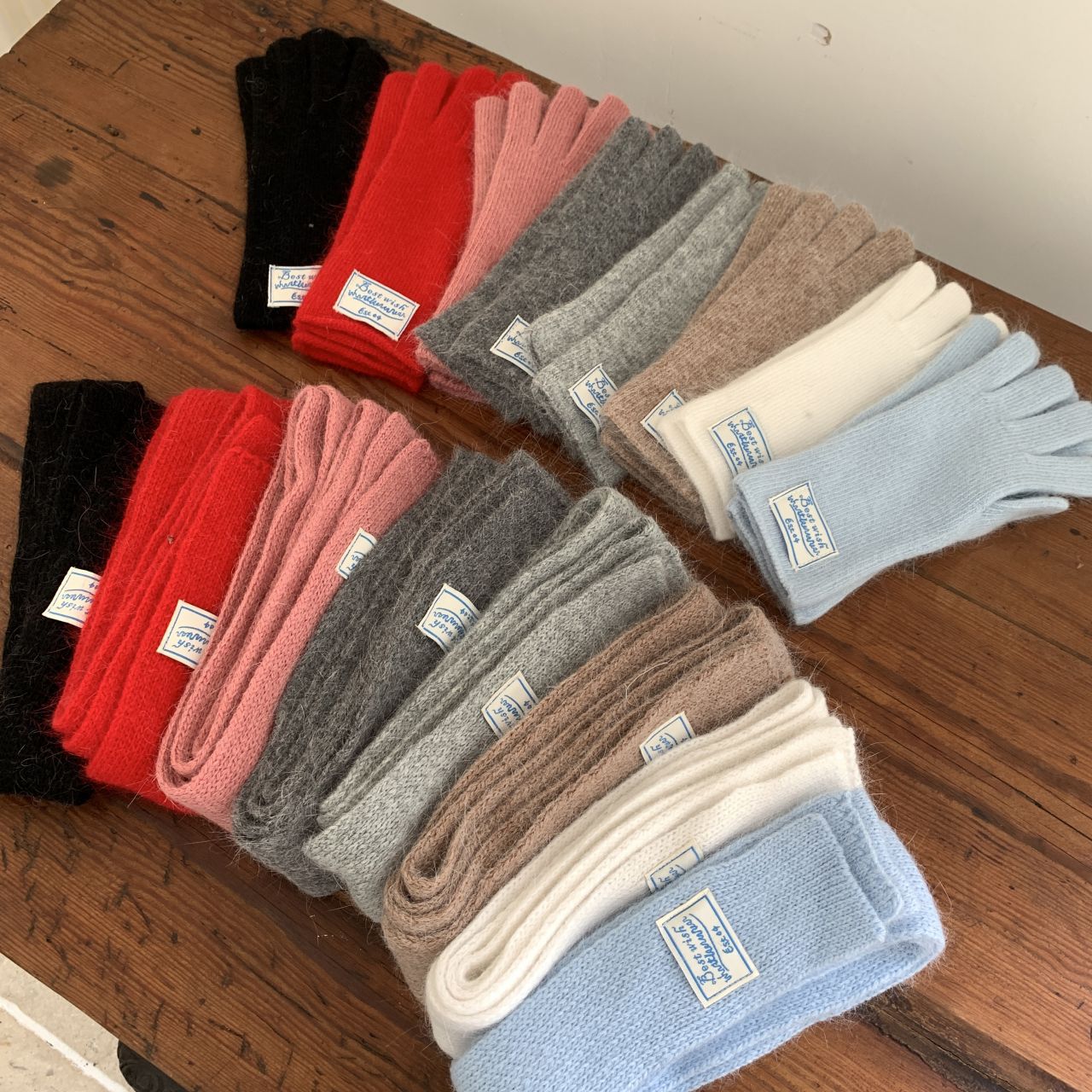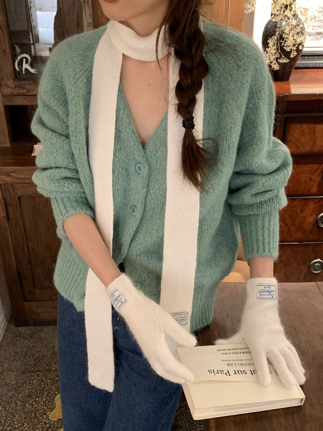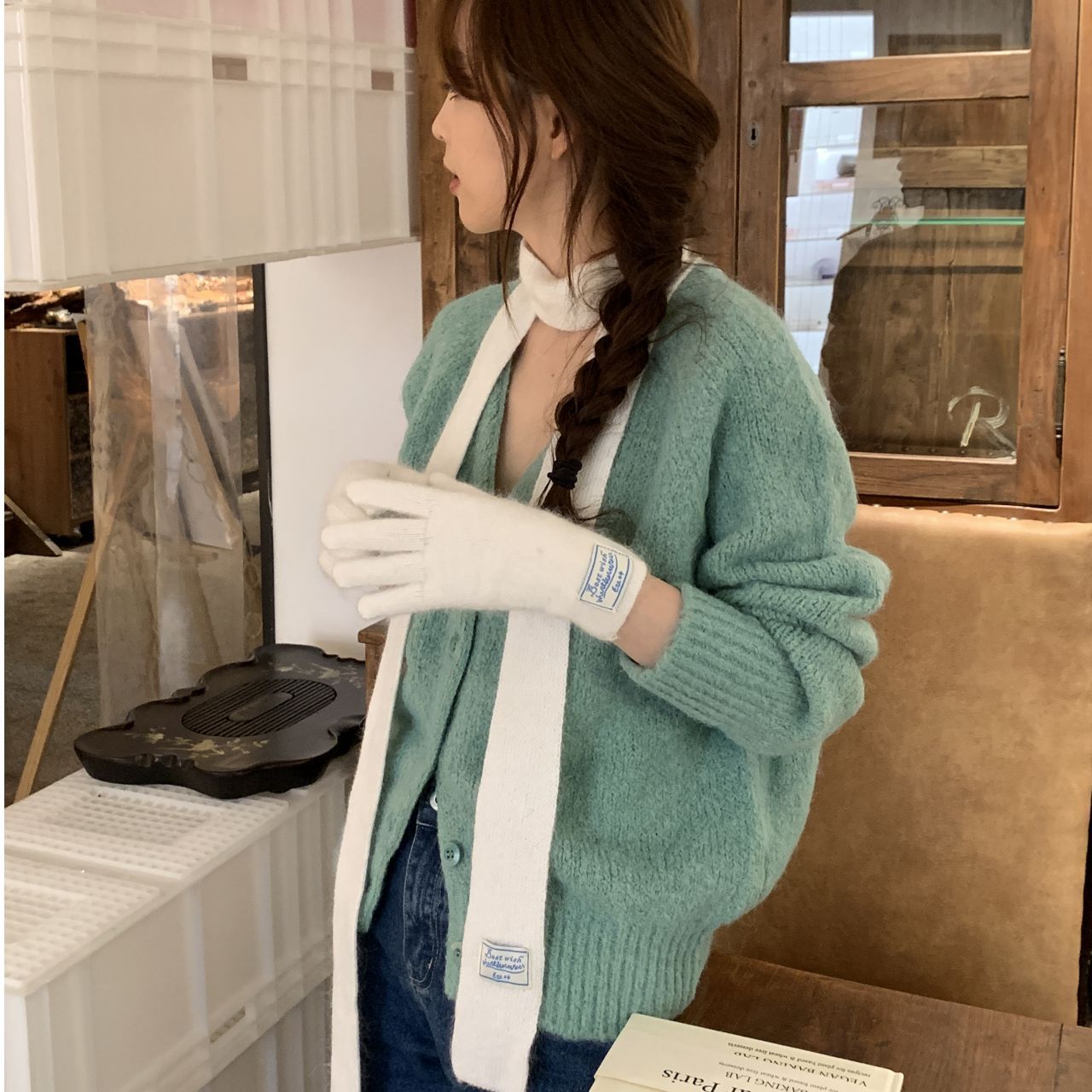 일본 스타일 가을과 겨울 복고풍 부드러운 왁스 긴 얇은 스카프 장갑 세트 모든 경기 모양 장식 니트 좁은 스카프