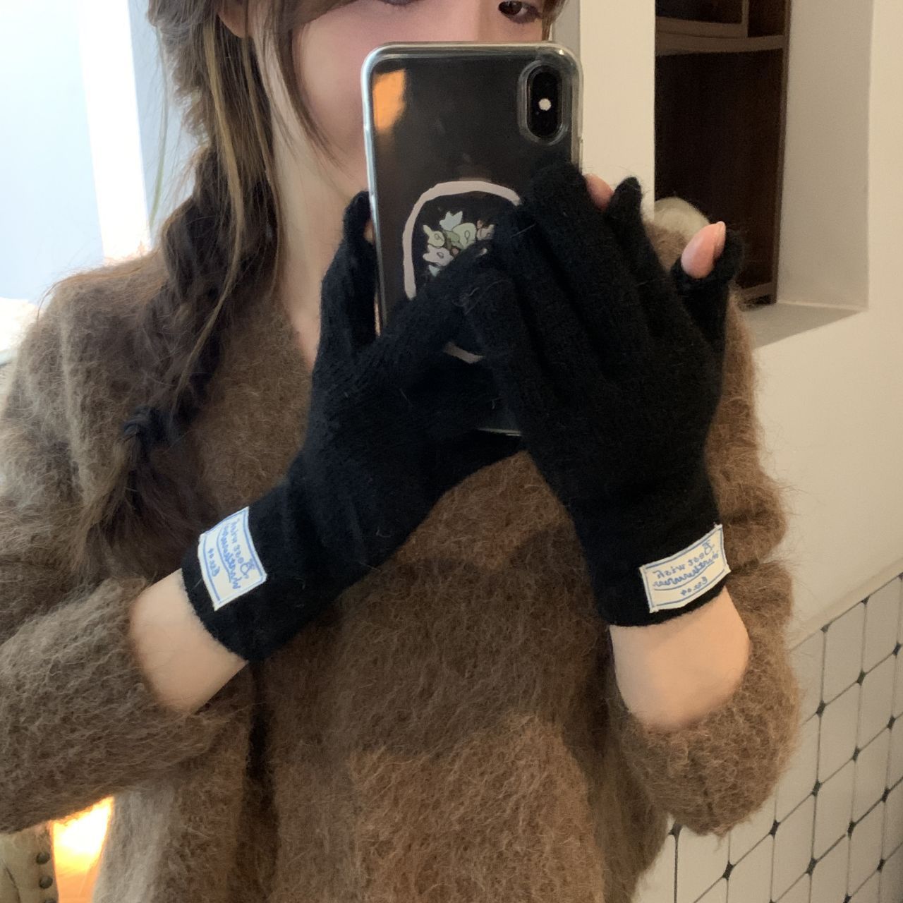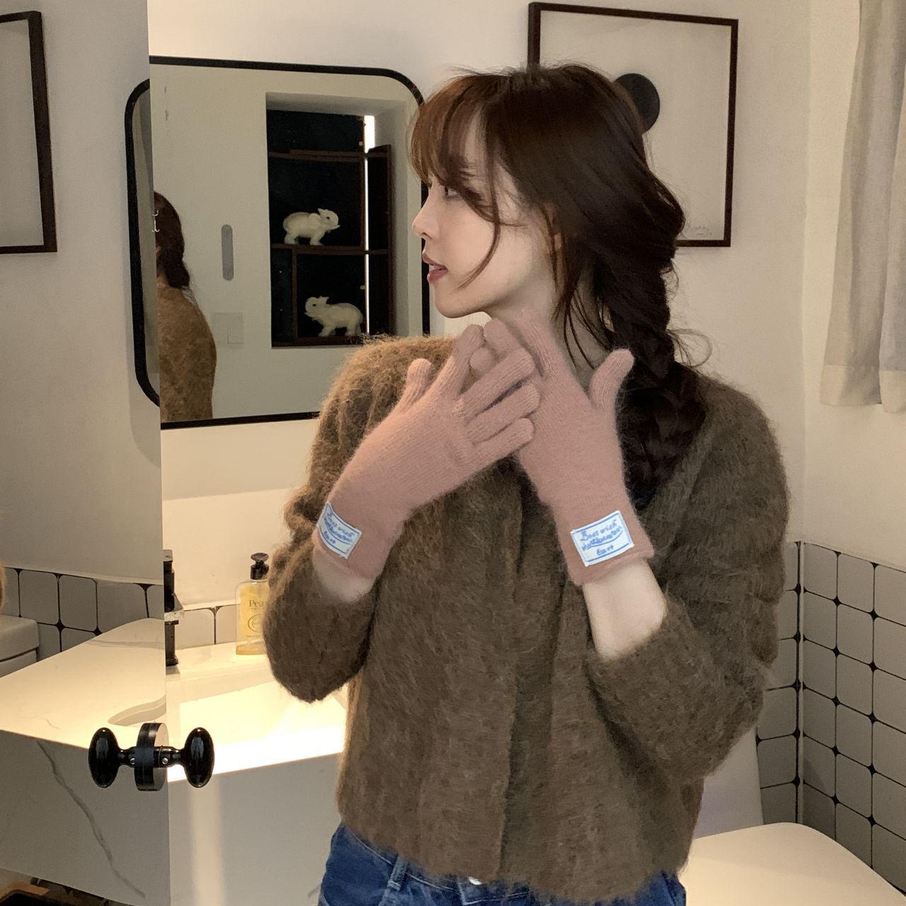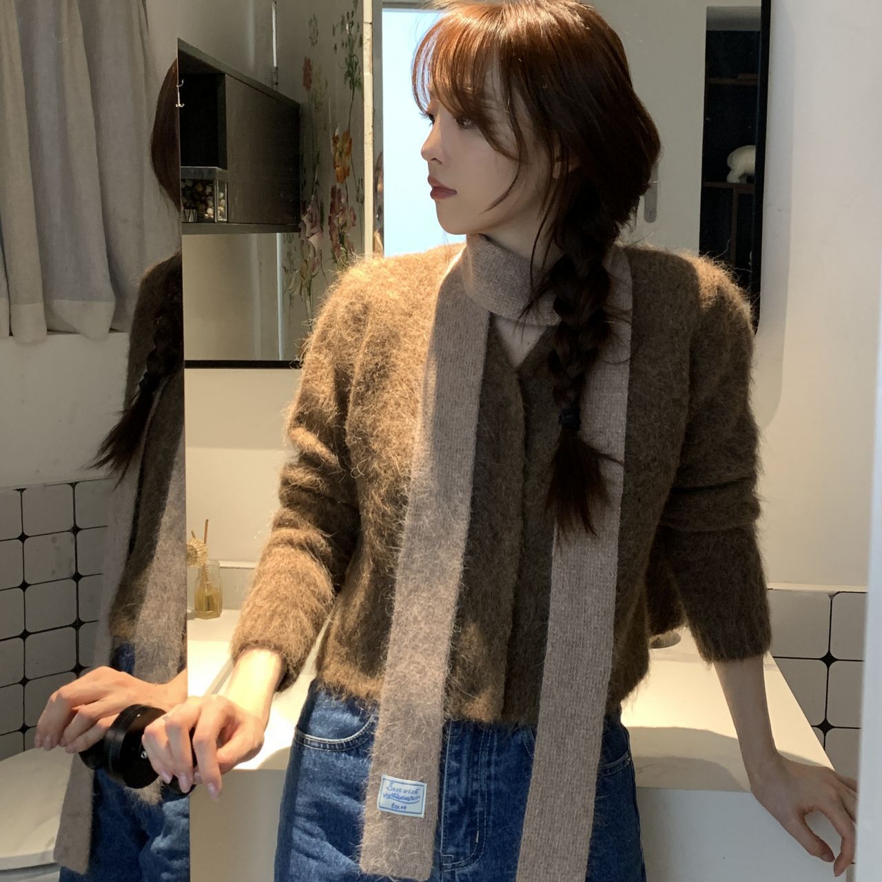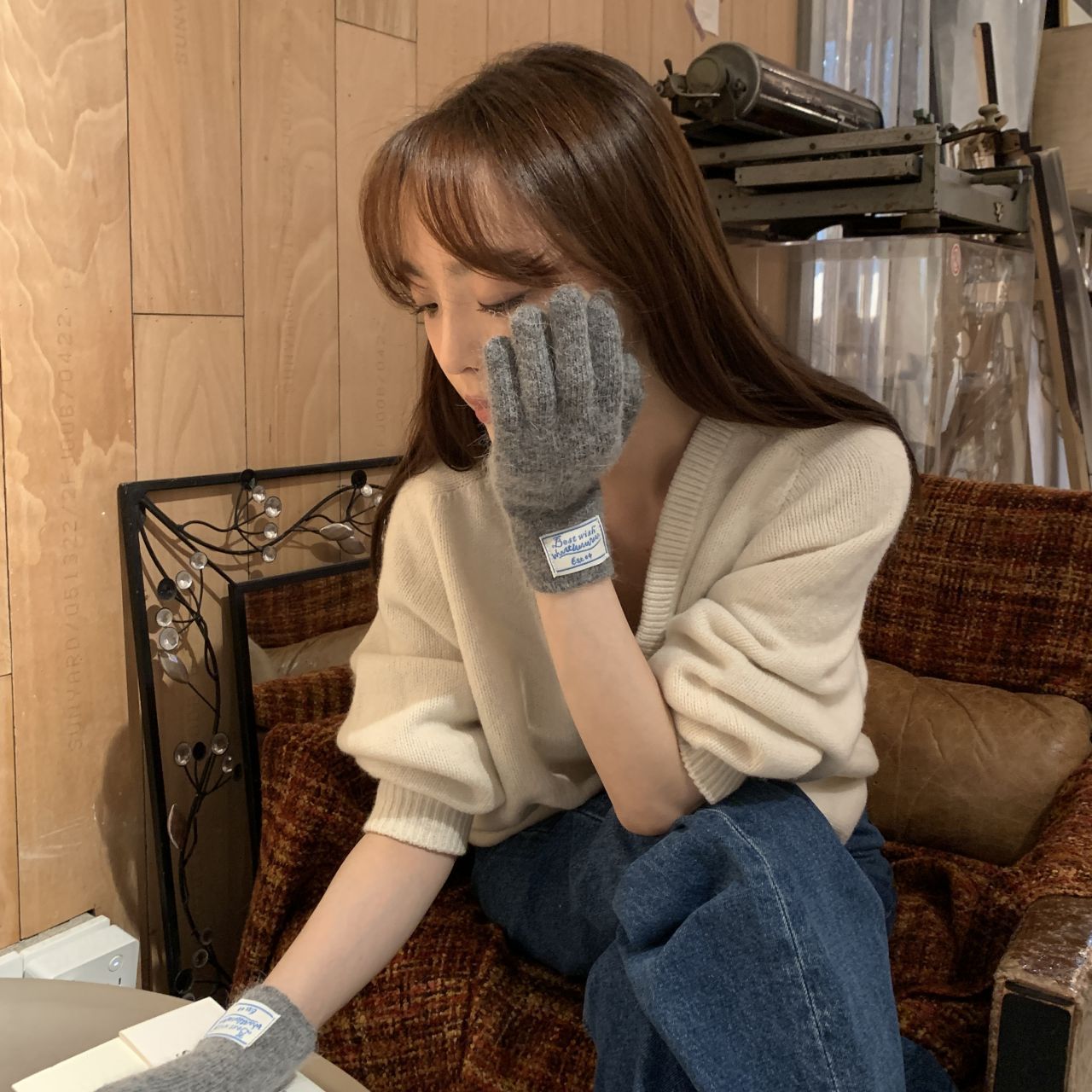 일본 스타일 가을과 겨울 복고풍 부드러운 왁스 긴 얇은 스카프 장갑 세트 모든 경기 모양 장식 니트 좁은 스카프