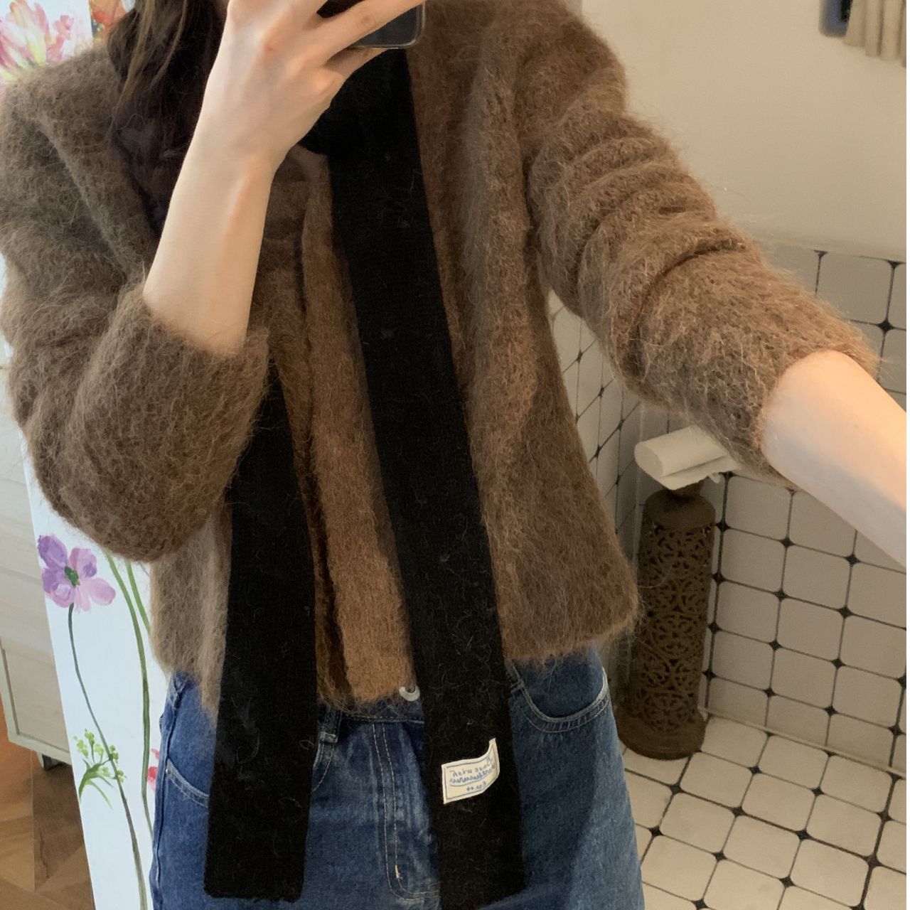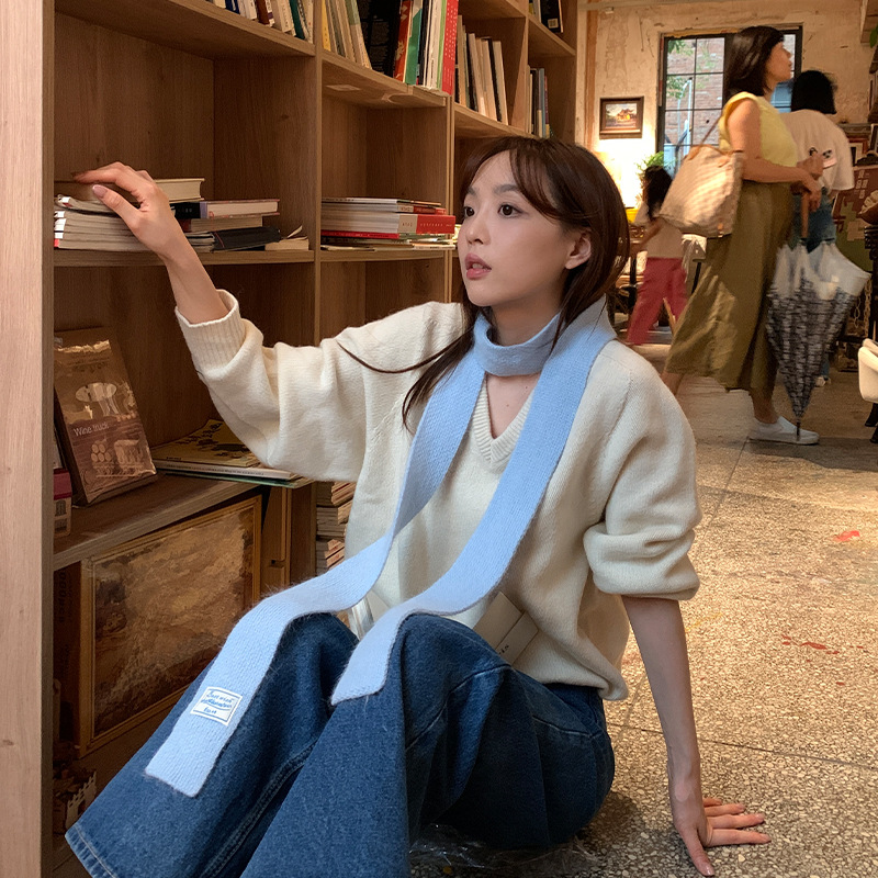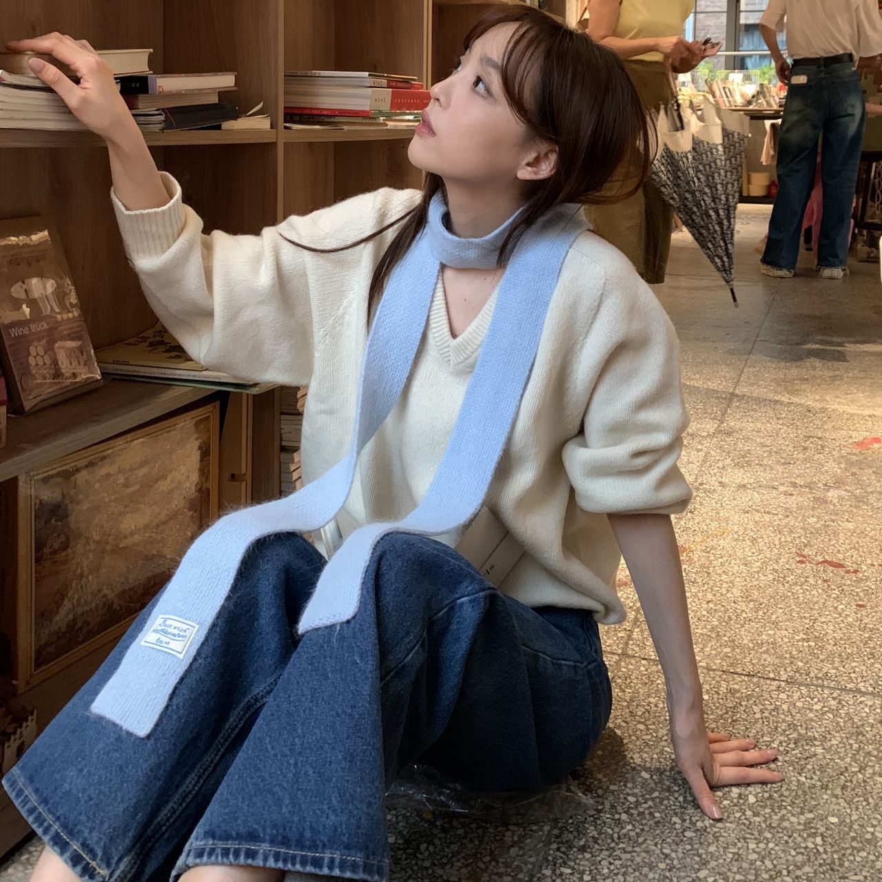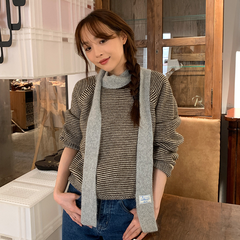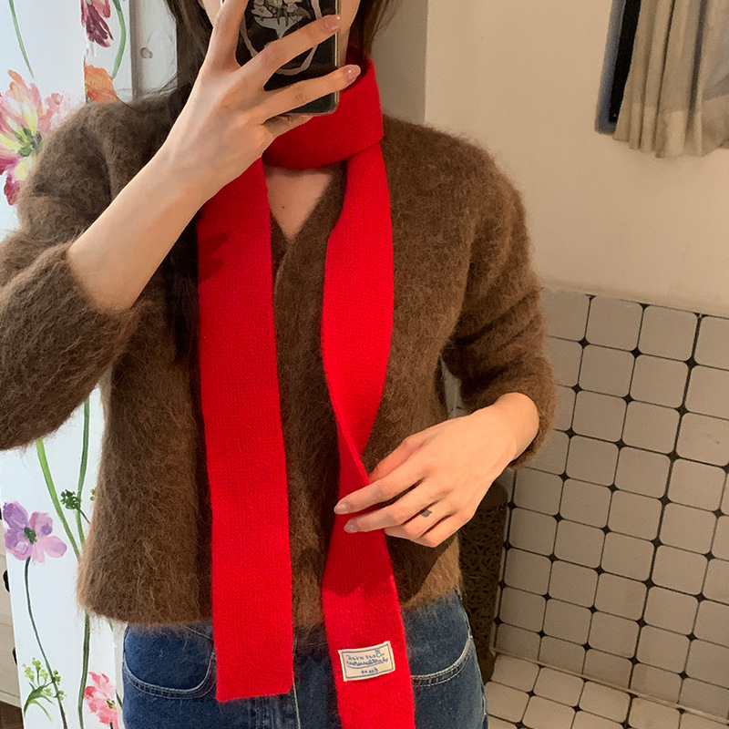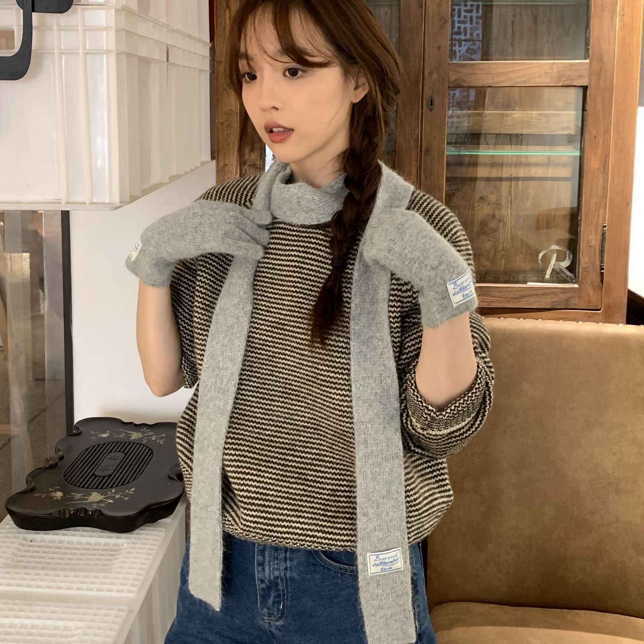 일본 스타일 가을과 겨울 복고풍 부드러운 왁스 긴 얇은 스카프 장갑 세트 모든 경기 모양 장식 니트 좁은 스카프스토어 가기