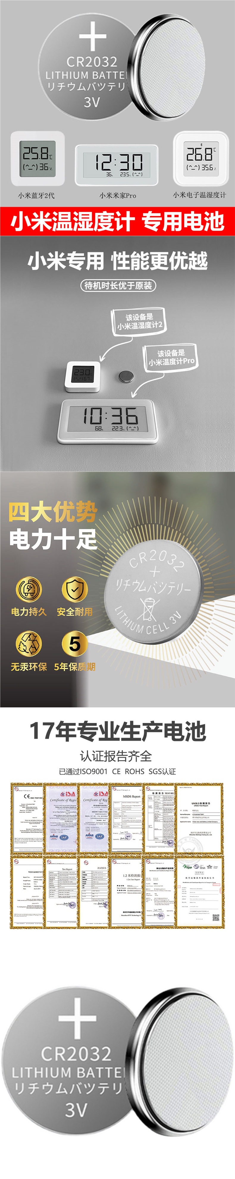Xiaomi 온도계 및 습도계 버튼 배터리에 적합 Mijia 전자 홈 실내 온도계 2세대 Pro 특수 미터스토어 가기