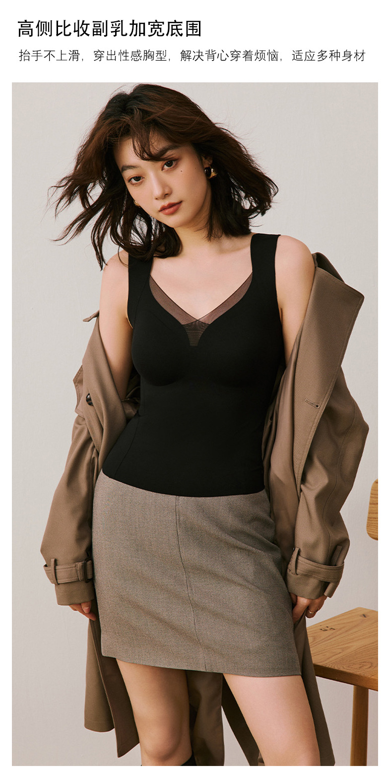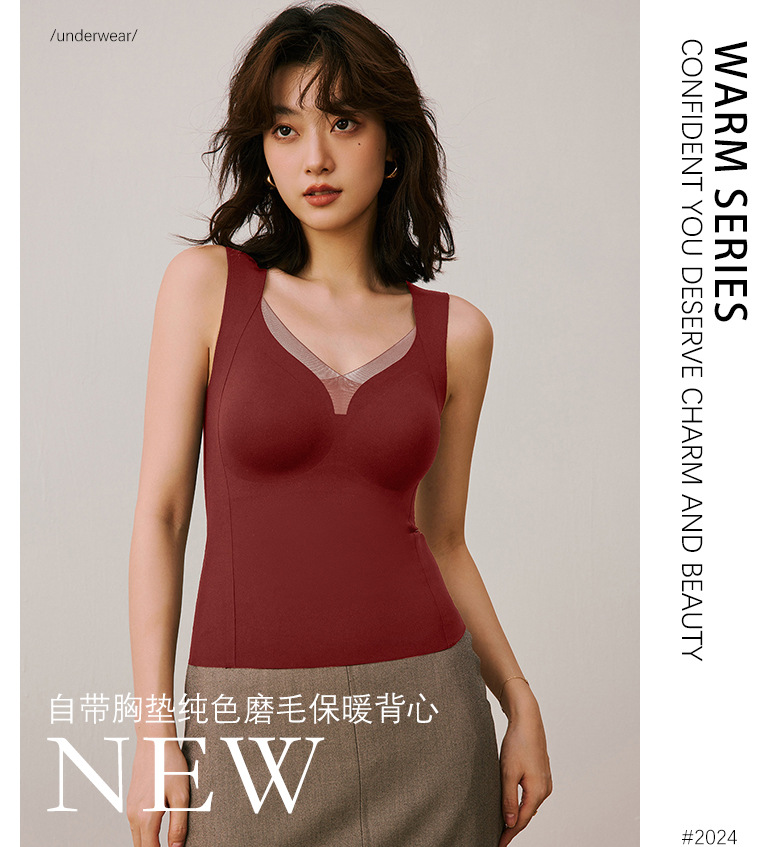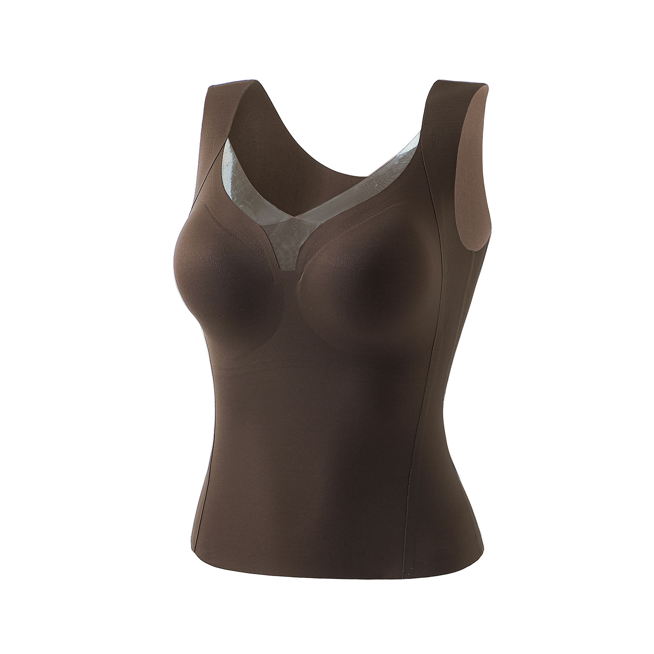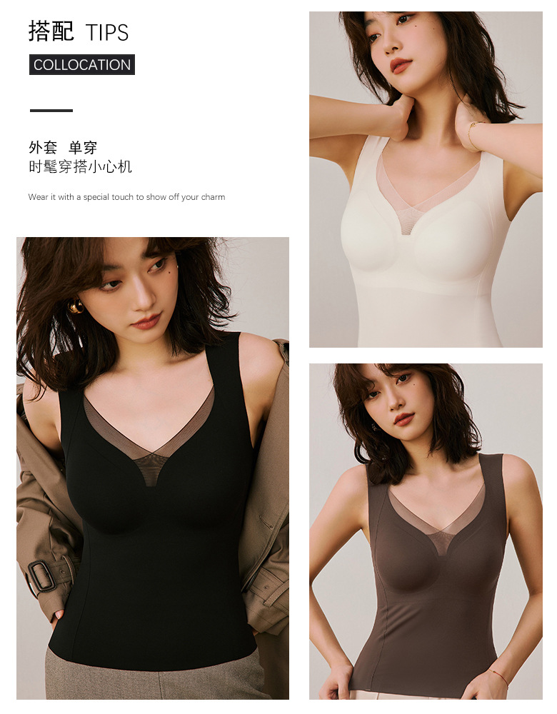 가을과 겨울 새로운 고정 컵 여성 조끼 섹시한 메쉬 양면 샌딩 편안한베이스 착용 원활한 슬링 여성