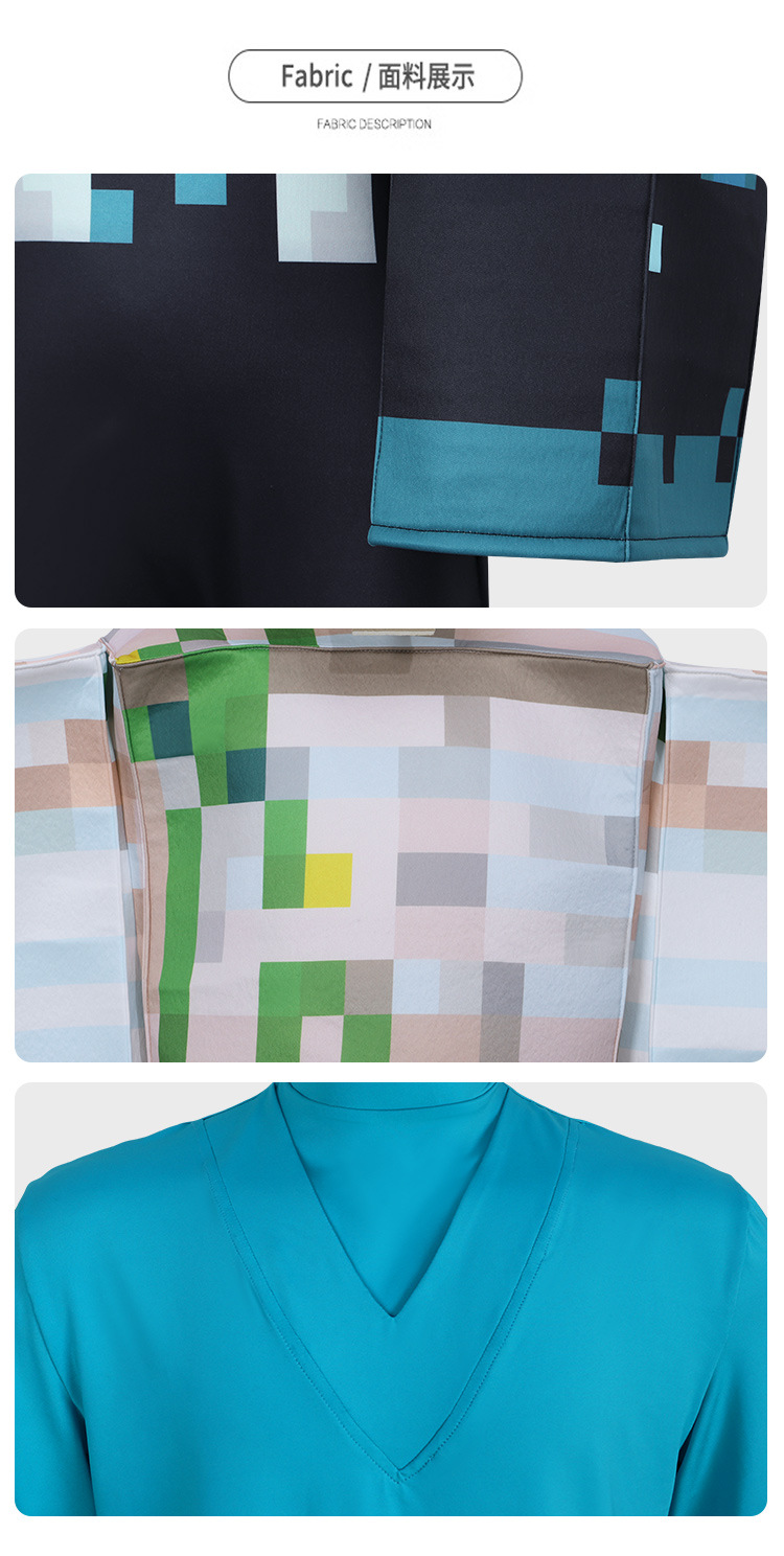 내 세계 스티브 코스프레 의상 라이브 할로윈 마인 크래프트 영화 같은 파란색 짧은 소매