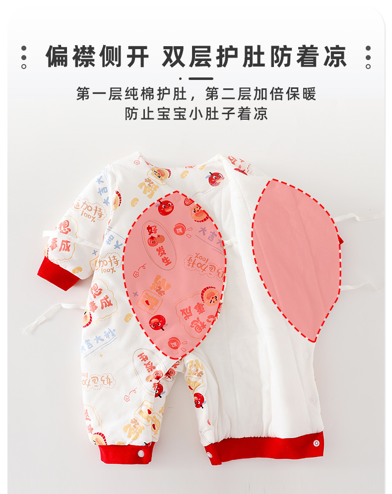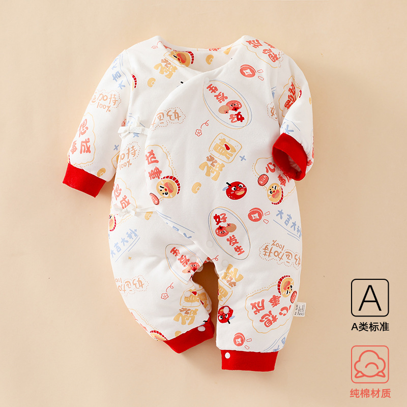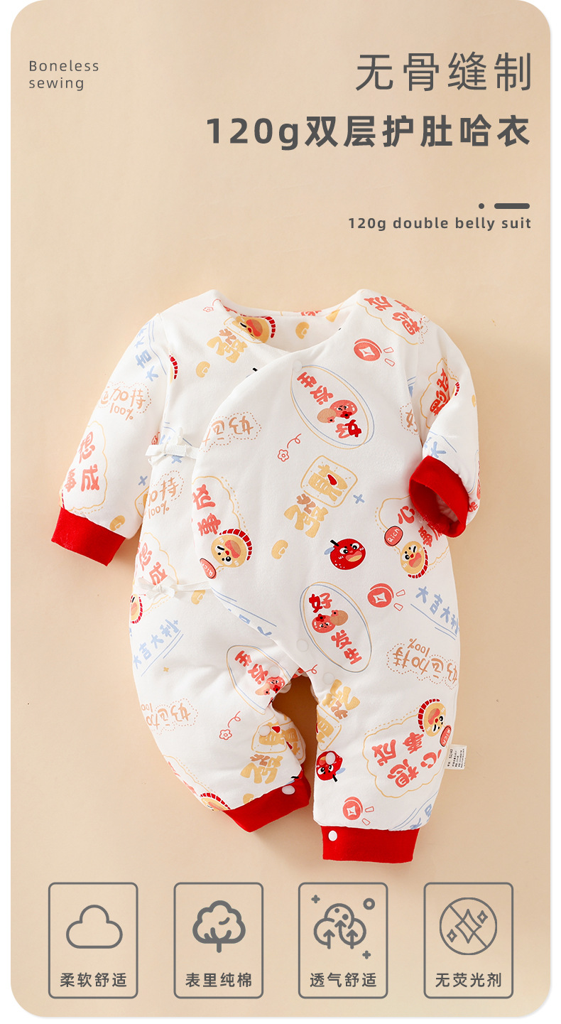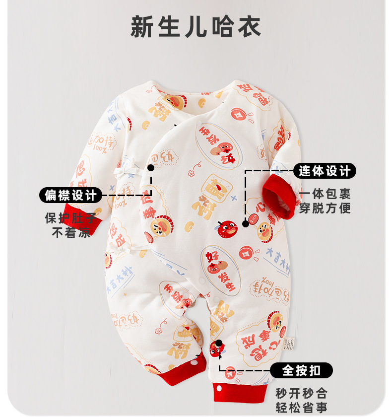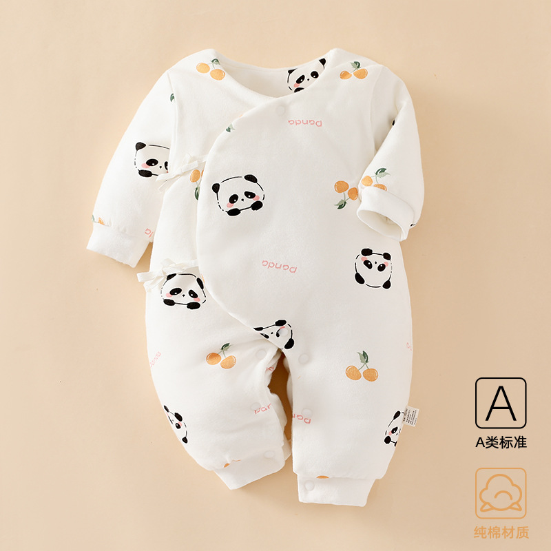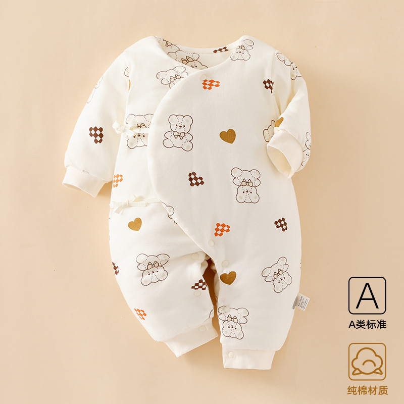 아기의 점프 수트 가을과 겨울 코튼 두꺼운 코튼 옷 신생아 옷 순수한면 신생아 새끼 모자 등반 옷 안양