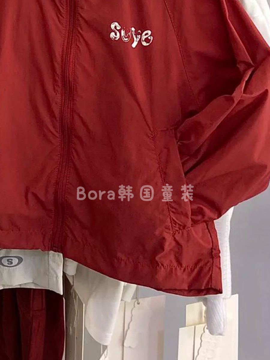 소년 자외선 차단 의류 어린이 여름 의류 2025 새로운 얼음 실크 경량 후드 자켓 아기 소녀 레드 스트리트 탑