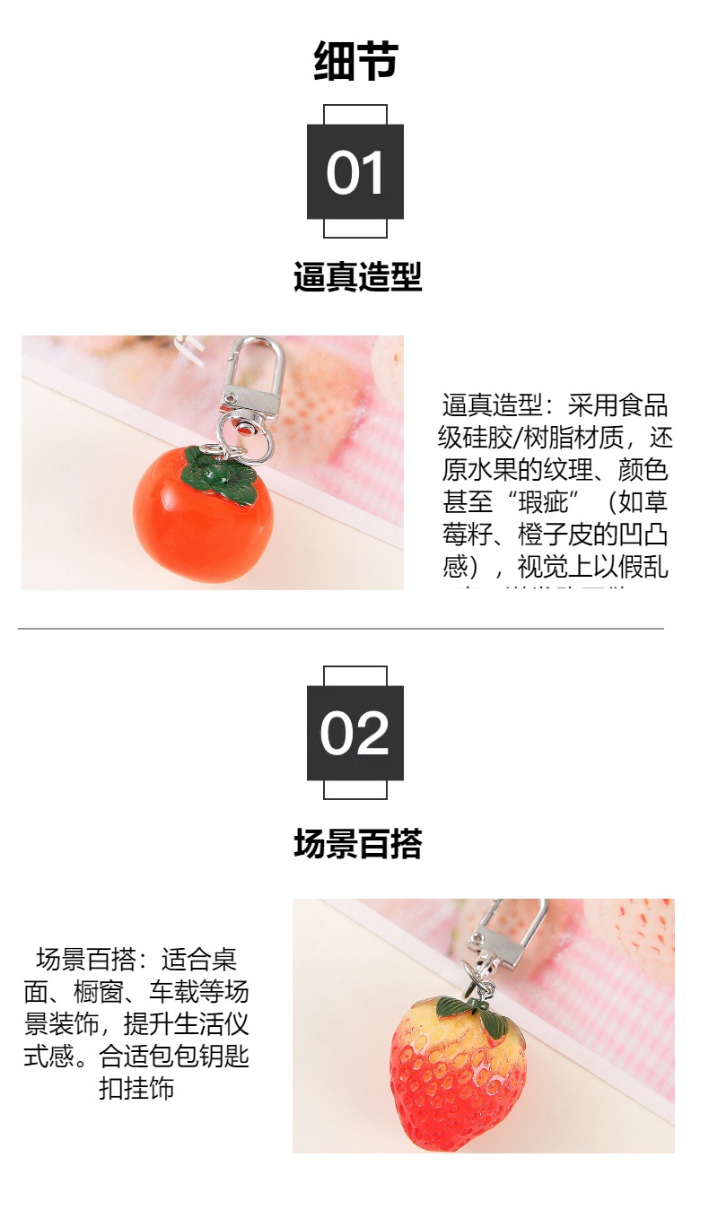 수지 시뮬레이션 과일 딸기 키 체인 좋은 감 펜던트 DIY 수제 액세서리 가방 펜던트