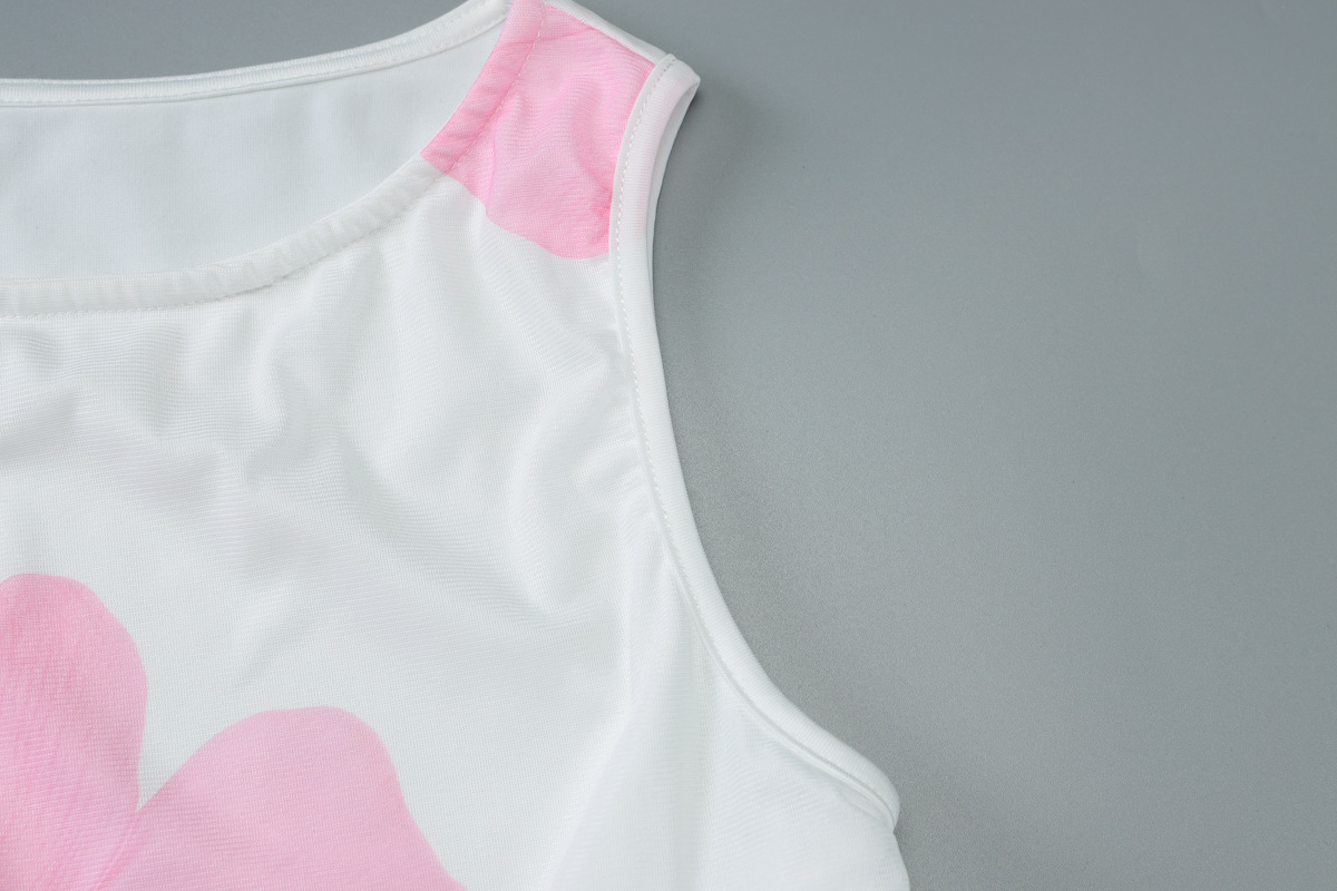 국경 간 유럽과 미국 스타일 2025 여름 여성의 새로운 메쉬 스티칭 패션 프린트 민소매 탑 스커트 세트스토어 가기