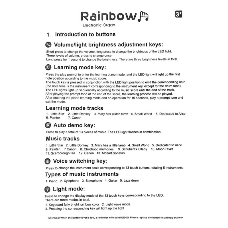 국경 간 새로운 터치 스크린 전자 키보드 무지개 빛 음악 다기능 교육 조기 교육 어린이 악기 피아노 연주 가능