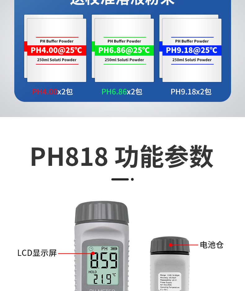 • <<【산-염기 PH 측정기】PH818 분해능 0.01PH(충전 세트 포함)>>