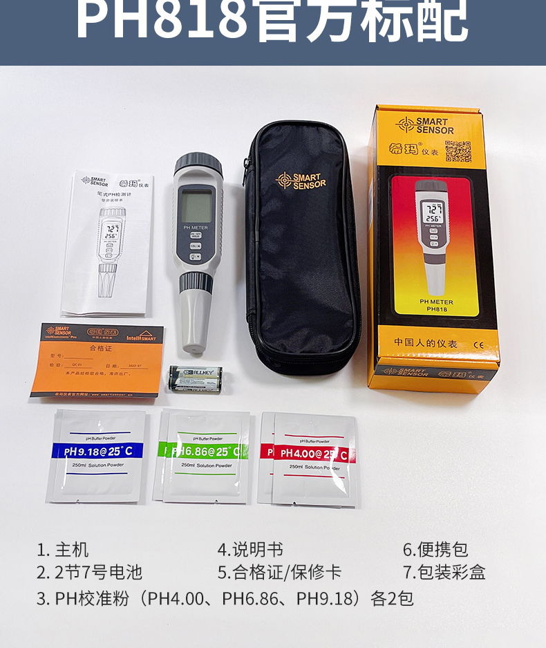 • <<[산-염기 PH 측정기] PH818 분해능 0.01PH(휴대용 가방, 배터리, 교정 파우더 포함) >>