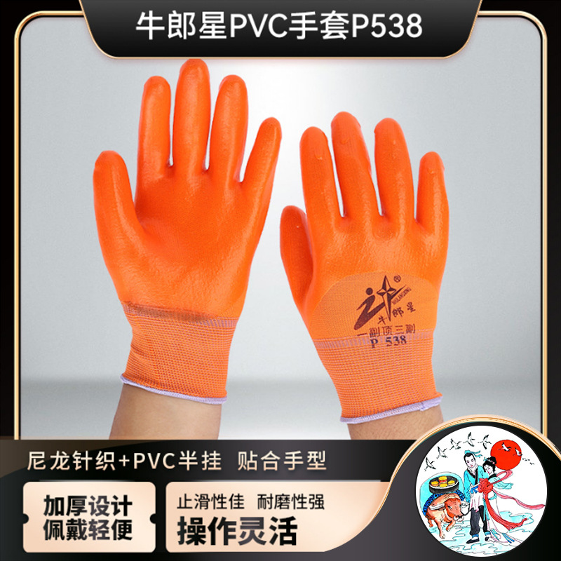 제조업체 공급 토추성 PVC 나일론 장갑 P538 탄성 실크 잠금 고정 고무 장갑 건설 현장 보호 손스토어 가기