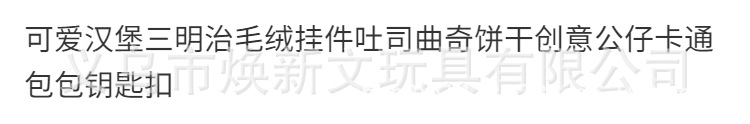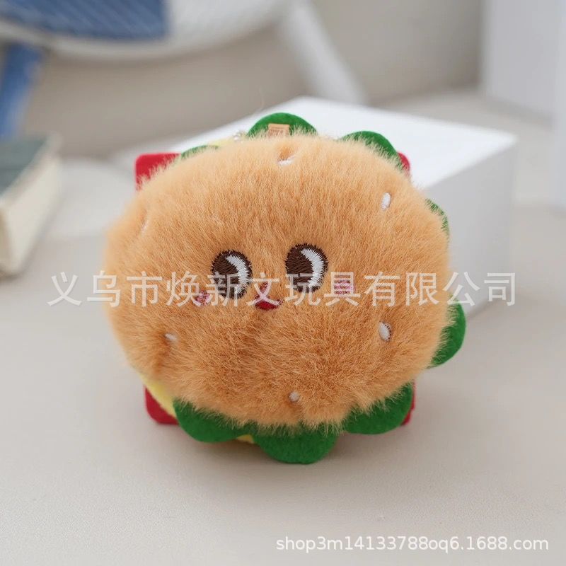 토스트 감자 튀김 버거 귀여운 만화 봉제 인형 가방 펜던트 여학생 커플 인형 펜던트 키 체인