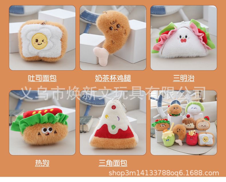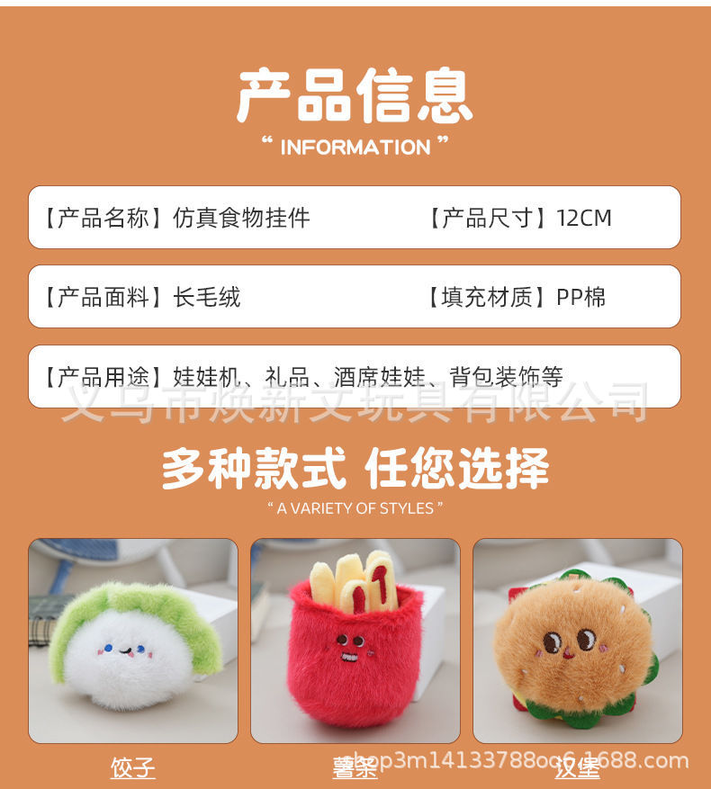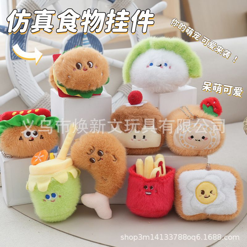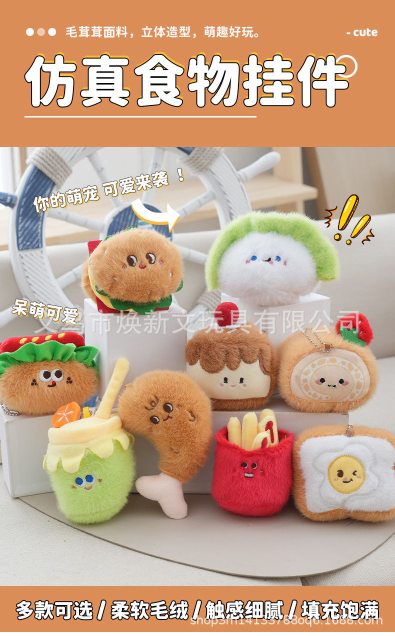 토스트 감자 튀김 버거 귀여운 만화 봉제 인형 가방 펜던트 여학생 커플 인형 펜던트 키 체인스토어 가기