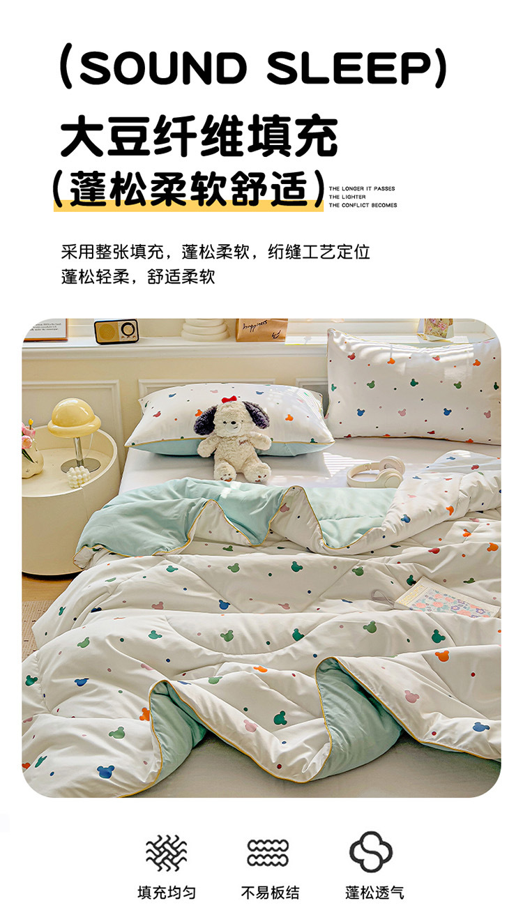클래스 A 이중 원사 콩 섬유 이불 여름 에어컨 이불 코어 여름 시원한 이불 얇은 싱글 및 더블 봄, 가을 기계 세탁 가능