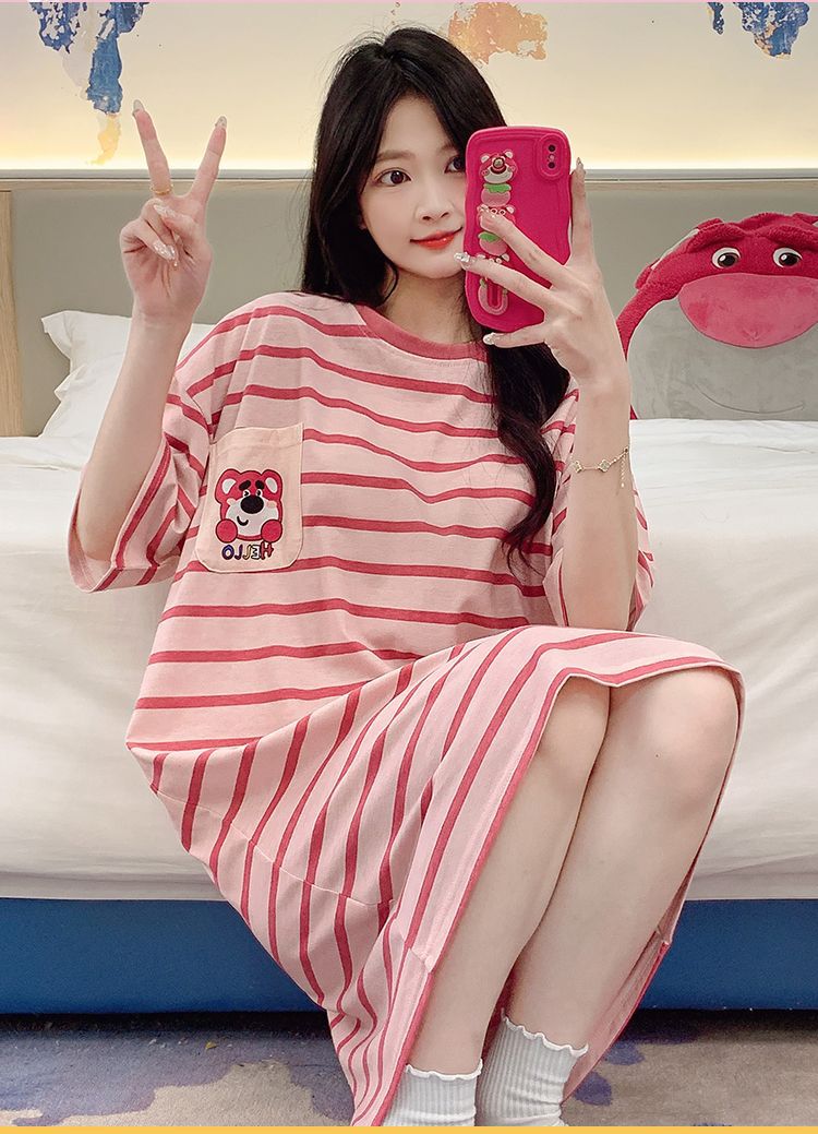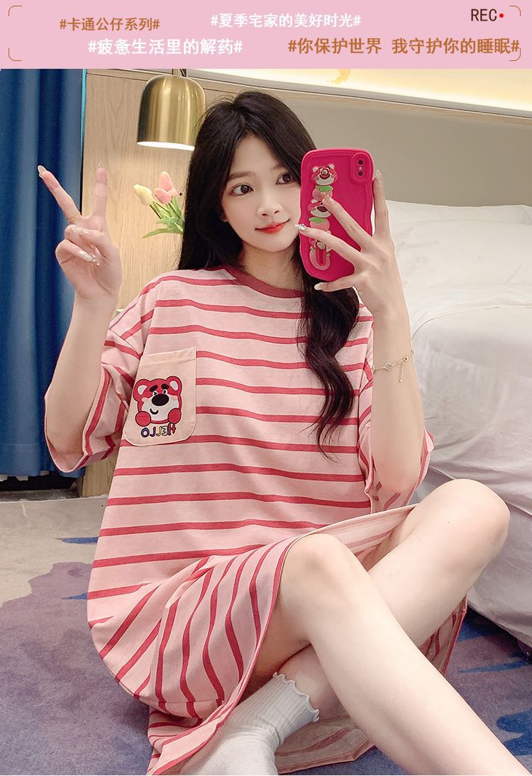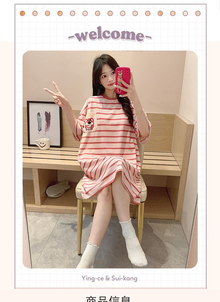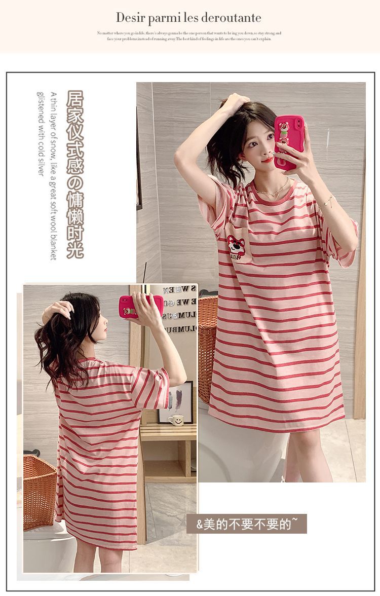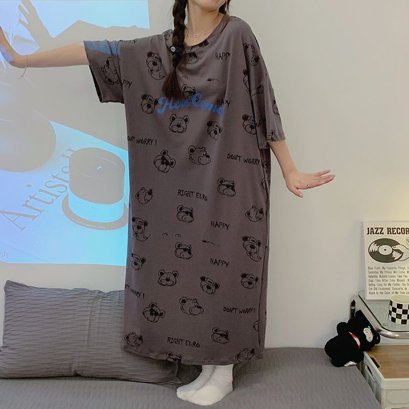 여름 나이트 드레스 여성 반팔 플러스 사이즈 파자마 100.00kg 느슨한 플러스 사이즈 플러스 사이즈 여름 여자의 얇은 중간 길이스토어 가기