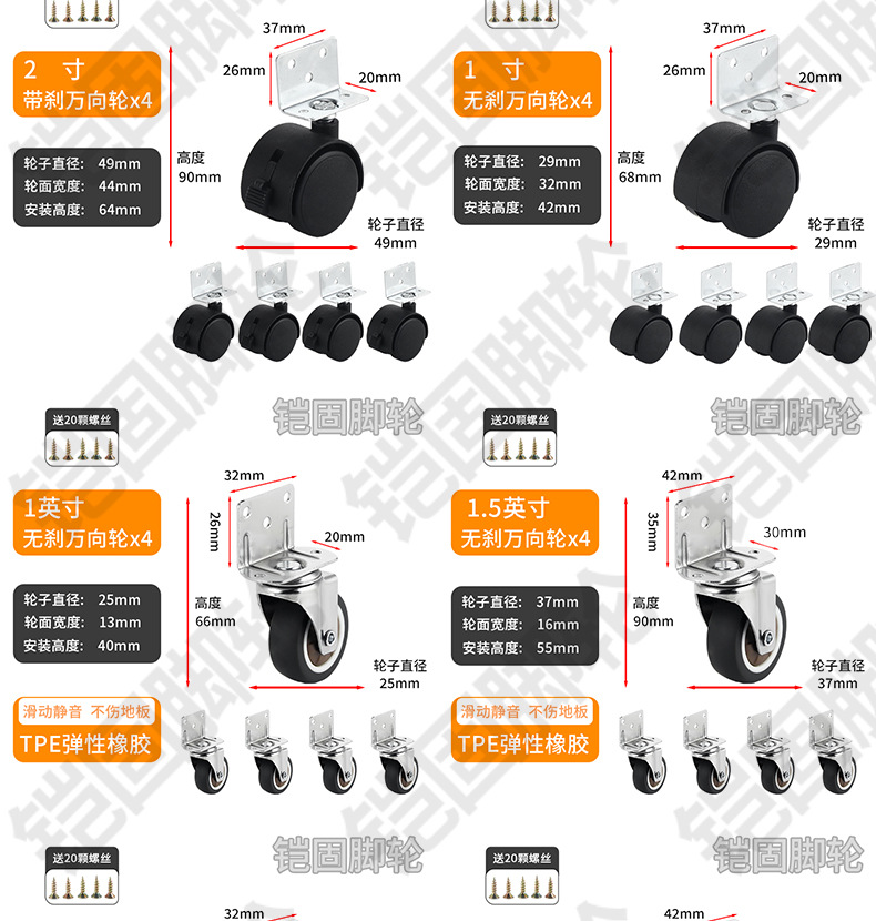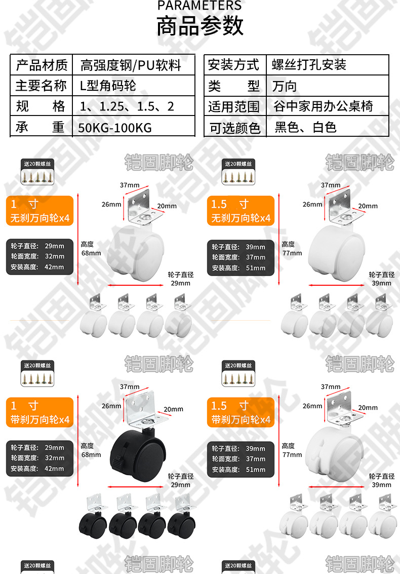 유아용 침대 L자형 앵글 코드 무소음 휠 범용 휠 침대 옆 테이블 꽃 스탠드 직각 1.5inch 브레이크가 있는 고무 휠
