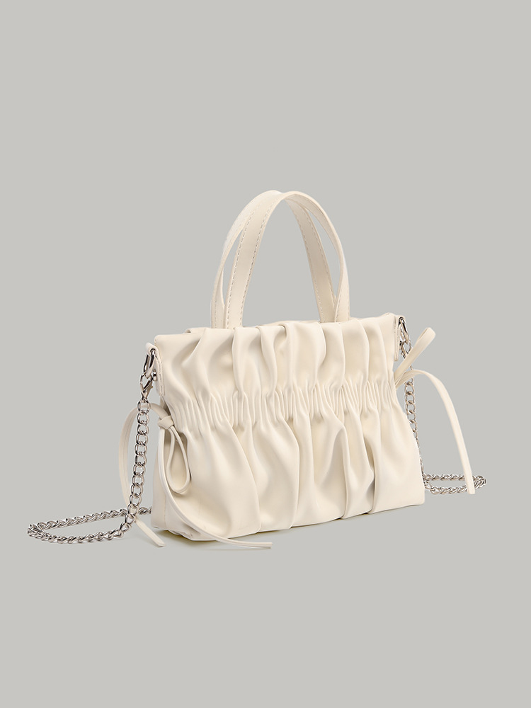고급 질감의 작은 사각형 가방 핸드백 2025 새로운 흰색 주름 구름 가방 체인 어깨 크로스 바디 백
