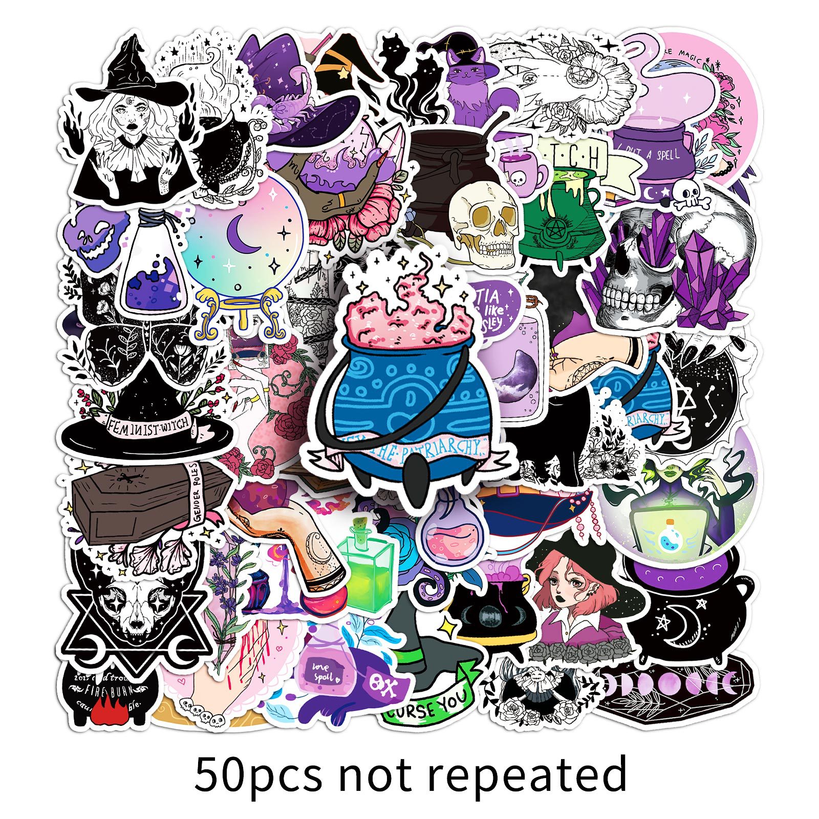50 마녀 만화 스티커 고딕 스타일 DIY 할로윈 장식 방수 접착제 벽 노트북 스티커