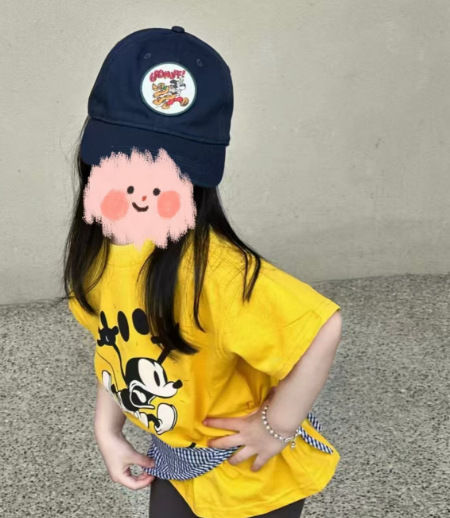 어린이 여름 만화 인쇄 반팔 느슨한 소녀의 캐주얼 티셔츠 반소매 크루 넥 유행 탑 0031A185