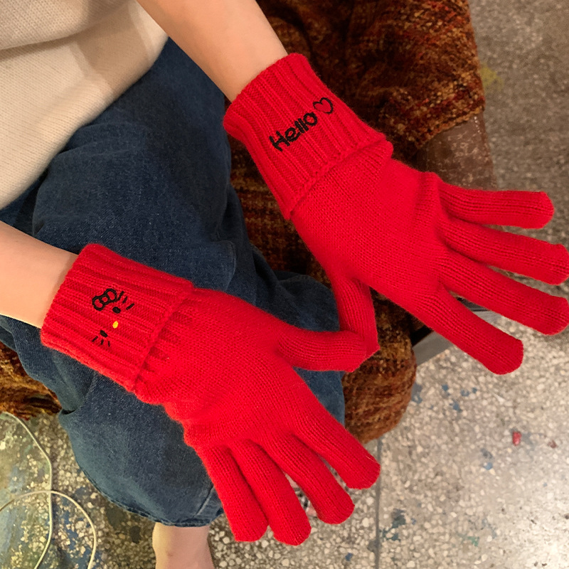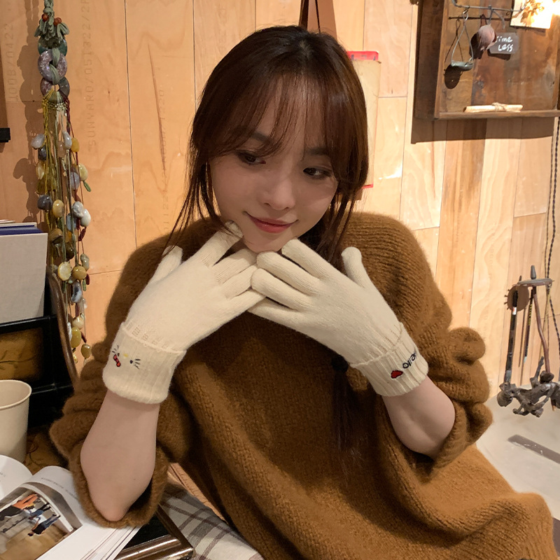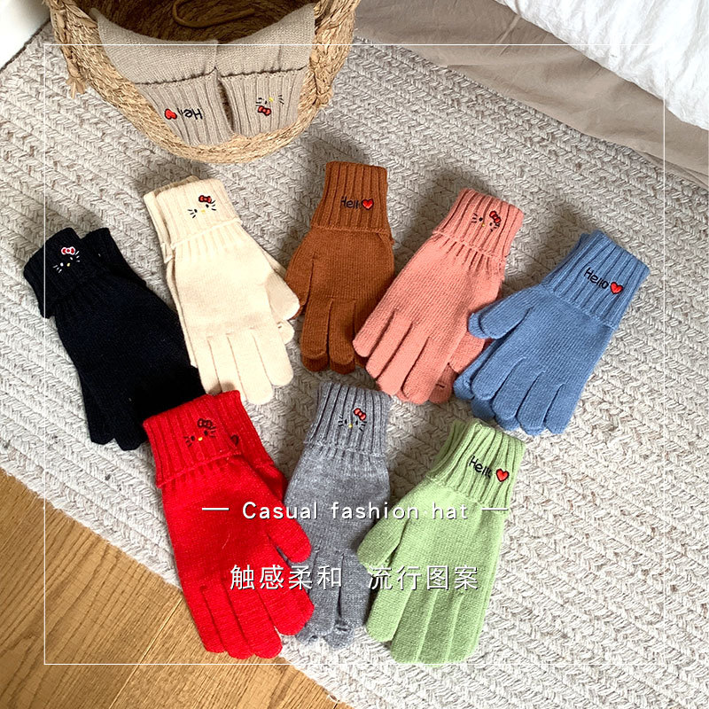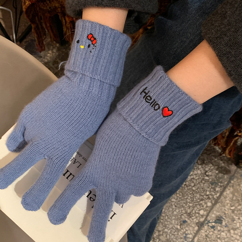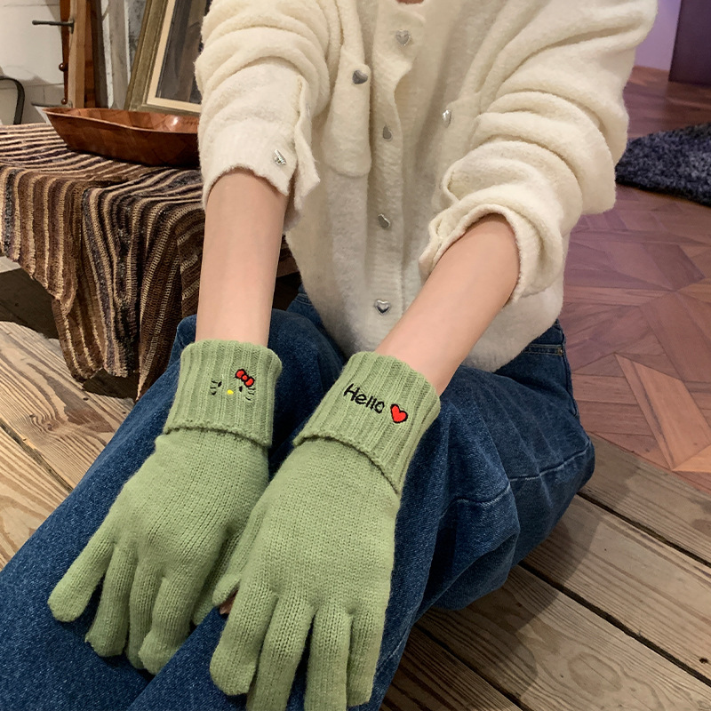 귀여운 장갑 터치 스크린 만화 고양이 귀여운 2024 겨울 새로운 두꺼운 따뜻한 벨벳 장갑