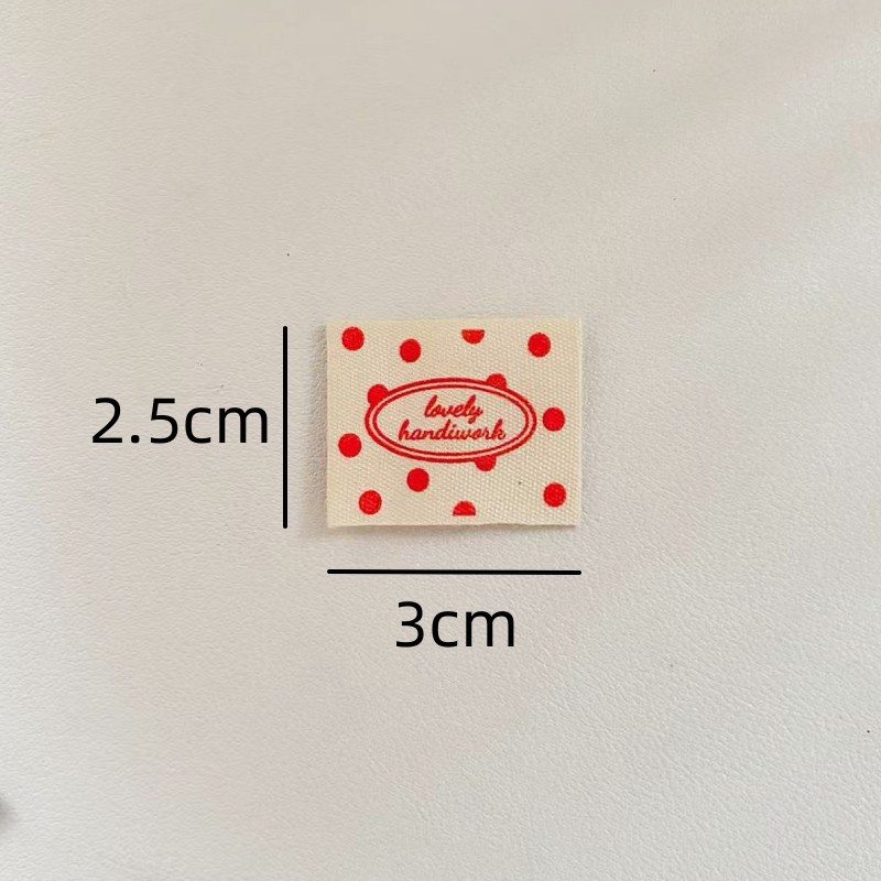 재고 순수 코튼 천 라벨 교수형 엣지 인 스타일 귀여운 곰 새끼 고양이 폴라 도트 간단한 장식 테이프 가방 액세서리 라벨