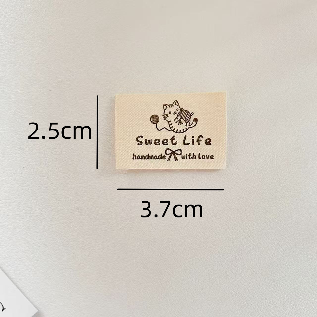 재고 순수 코튼 천 라벨 교수형 엣지 인 스타일 귀여운 곰 새끼 고양이 폴라 도트 간단한 장식 테이프 가방 액세서리 라벨스토어 가기