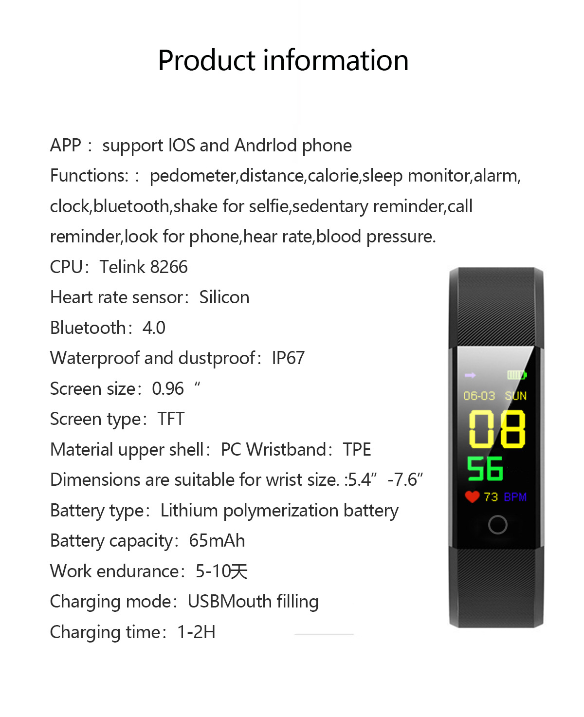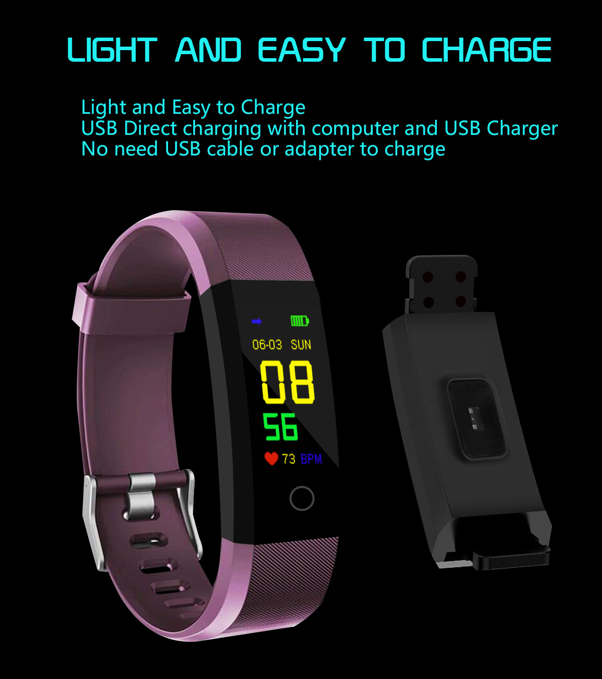 공장 도매 스마트 팔찌 115 플러스 혈압 심박수 운동 팔찌 남성과 여성의 컬러 스크린 스텝 미터 팔찌 시계