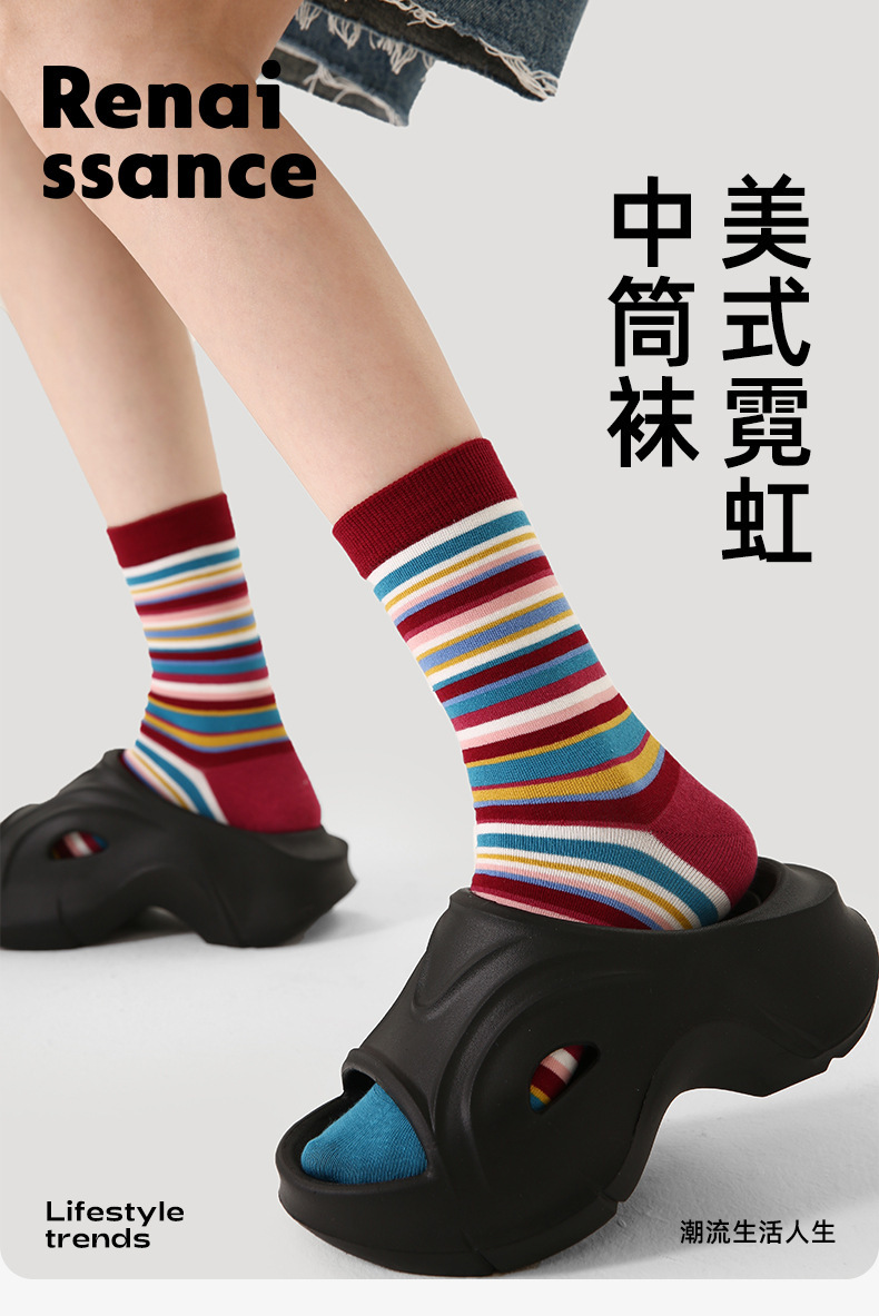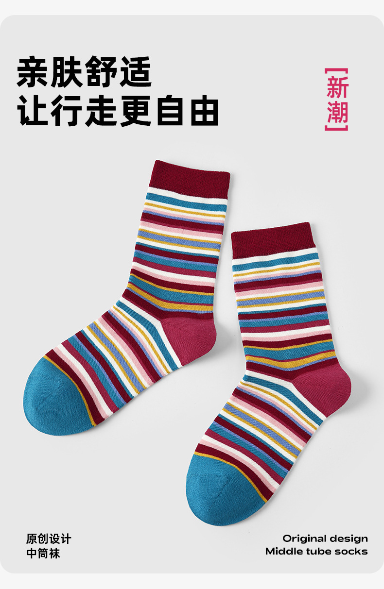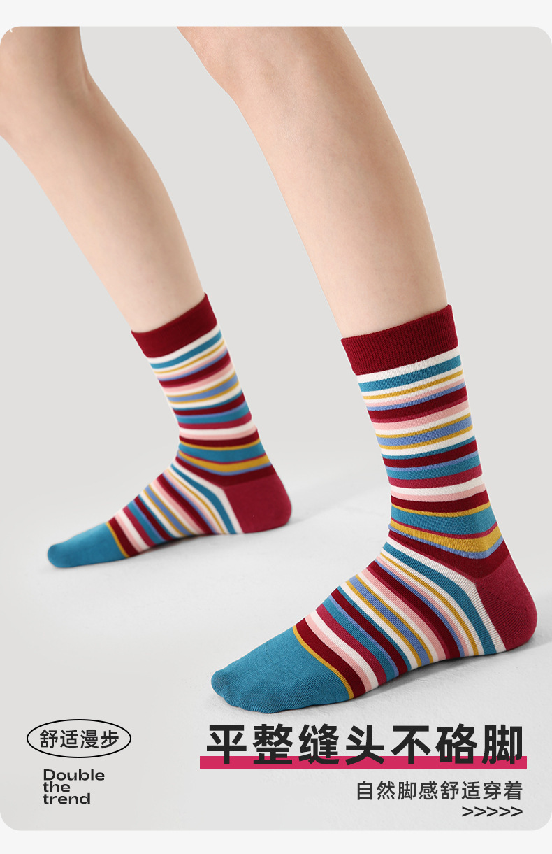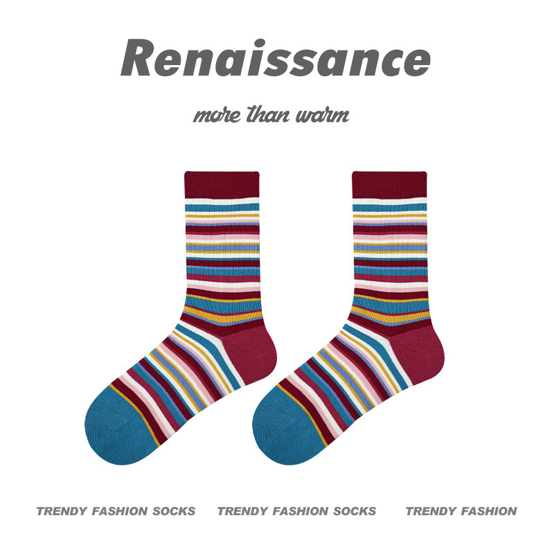 여성을위한 르네상스 양말 컬러 블록 가을 복고풍 빨간색과 파란색 뼈없는 빗질면 중간 튜브 ins 트렌디 스포츠 여성 양말스토어 가기