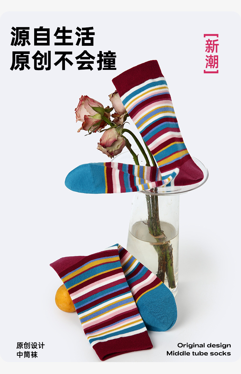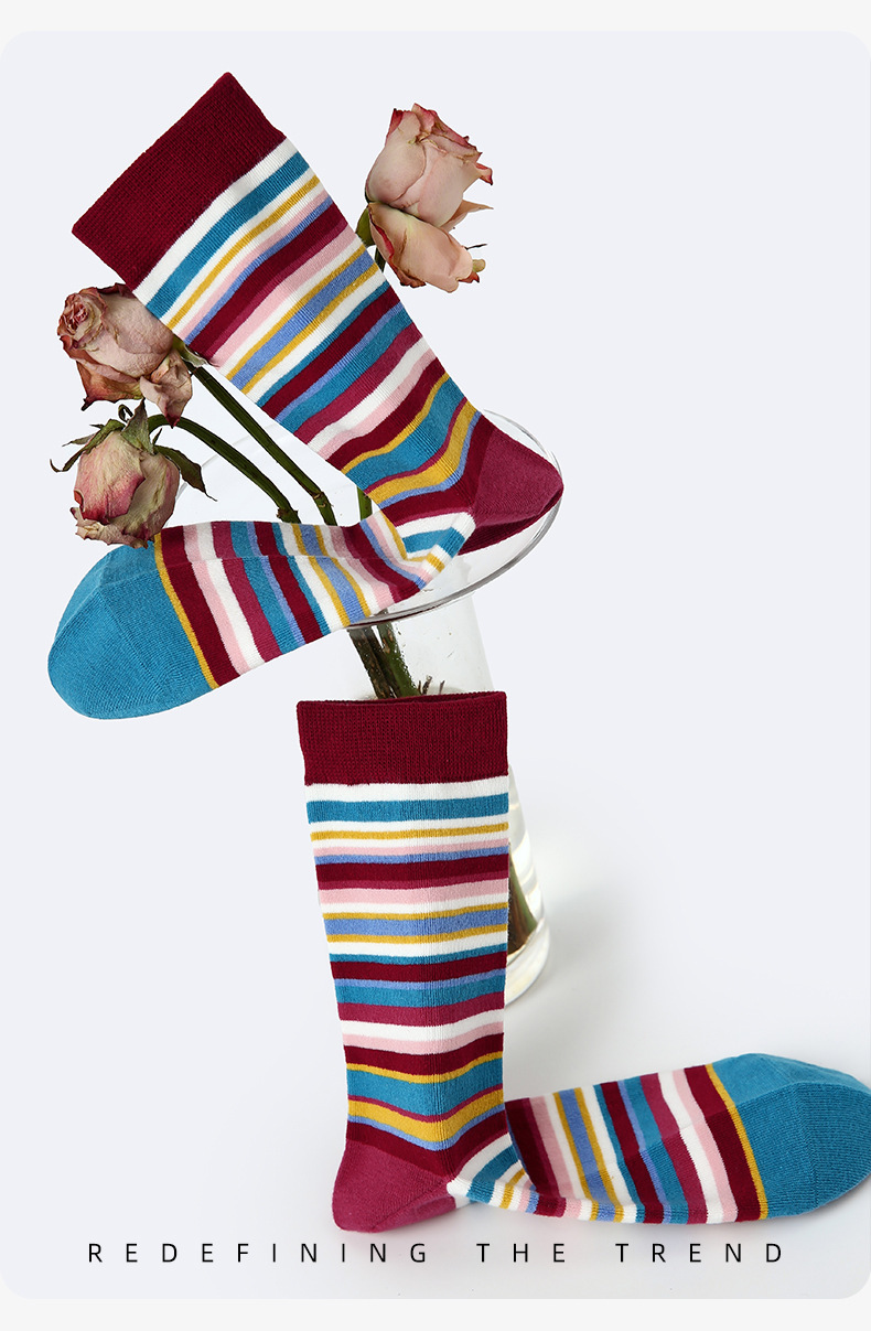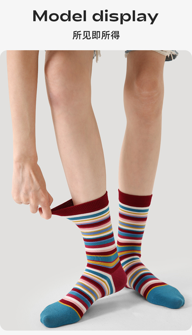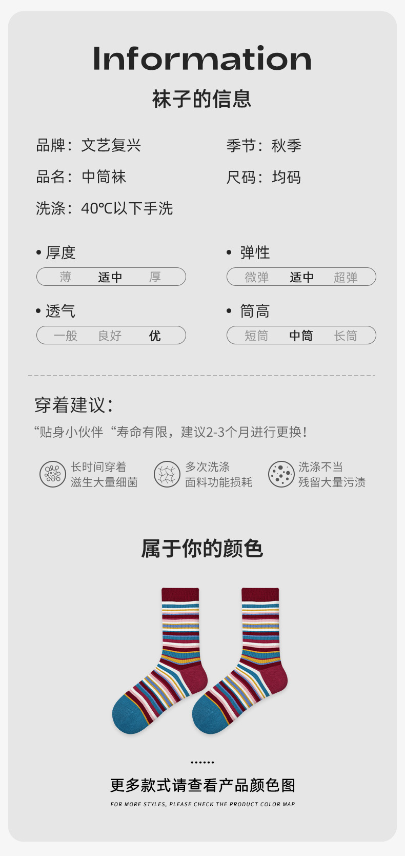 여성을위한 르네상스 양말 컬러 블록 가을 복고풍 빨간색과 파란색 뼈없는 빗질면 중간 튜브 ins 트렌디 스포츠 여성 양말스토어 가기