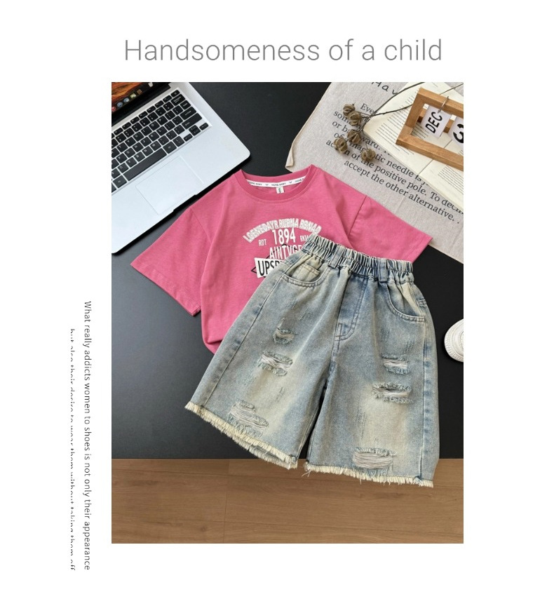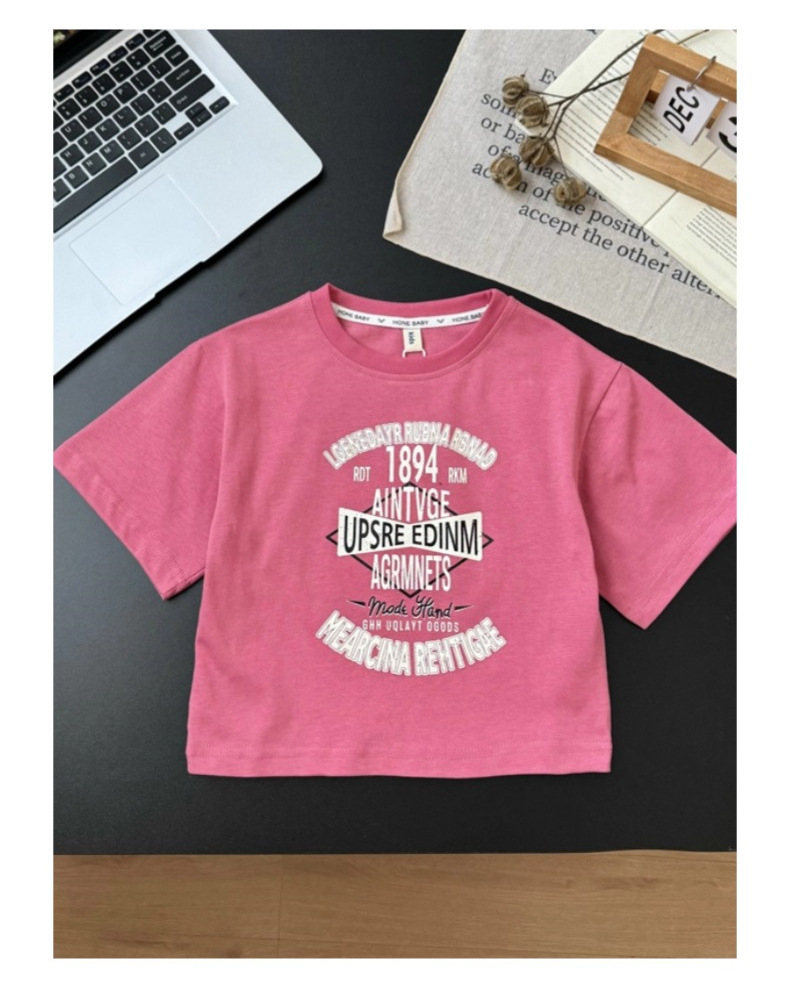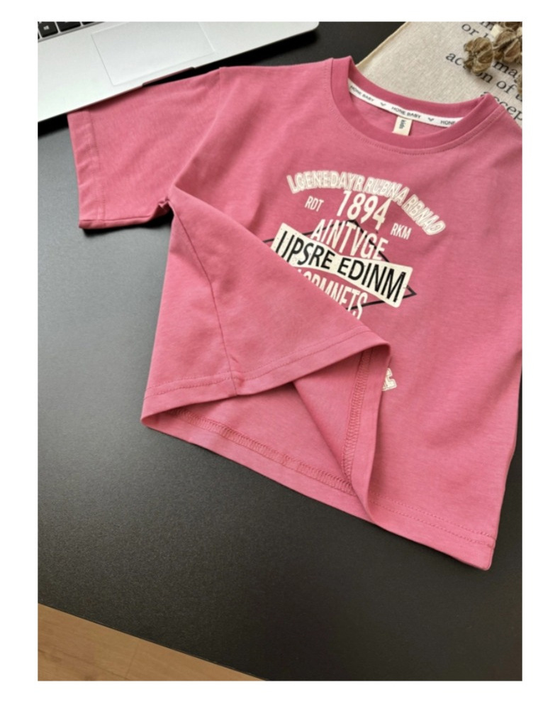 어린이 반팔 티셔츠 2025 여름 새 한국 스타일 소년 편지 인쇄 반팔 티셔츠 여름 캐주얼 탑 트렌디스토어 가기
