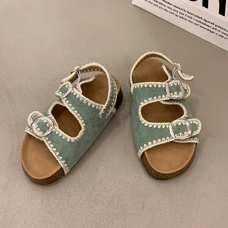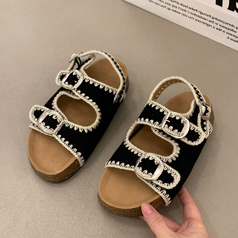 부드러운 가죽 버전 ~ 샌들 여성 2025 새로운 여름 트렌드 복고풍 다목적 통근 두꺼운 밑창 Boken 캐주얼 비치 신발