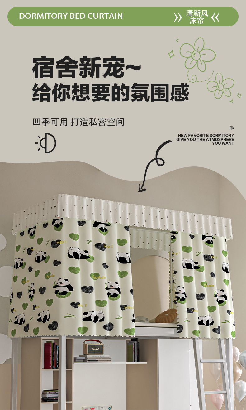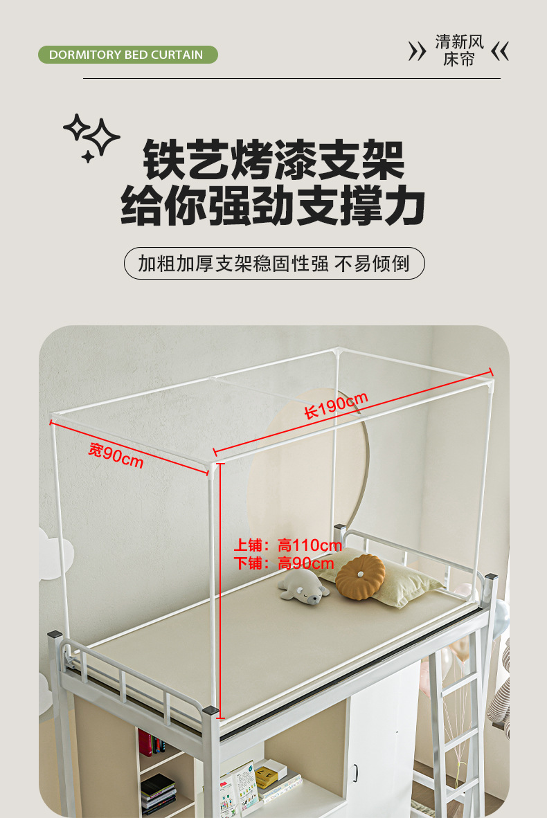 2024 새로운 두꺼운 활성 피부 케어 면화 초강력 차광 멀티 도어 출입 학생 침대 커튼 모기장 (신선하고 우아한