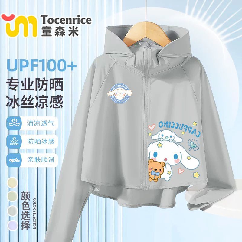 Jade Dog 소년과 소녀 후드 태양 보호 의류 여름 얇은 2025 새로운 얼음 실크 통기성 태양 보호 의류 어린이 여름 의류스토어 가기