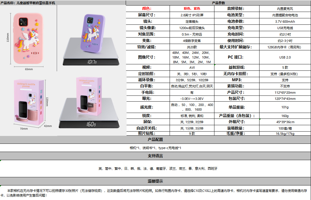 JJRC 새로운 어린이 조기 교육 계발 휴대 전화 HD 사진 퍼즐 창조적 인 소녀 장난감 시뮬레이션 터치 스크린 휴대 전화