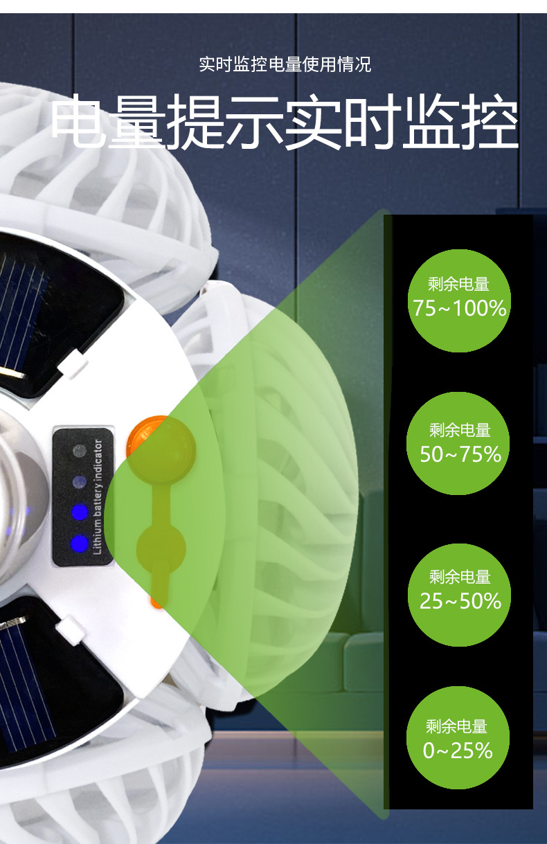태양 광 축구 팬 빛 야외 LED 전구 태양 캠핑 팬 빛 충전식 벽 장착 팬 빛스토어 가기