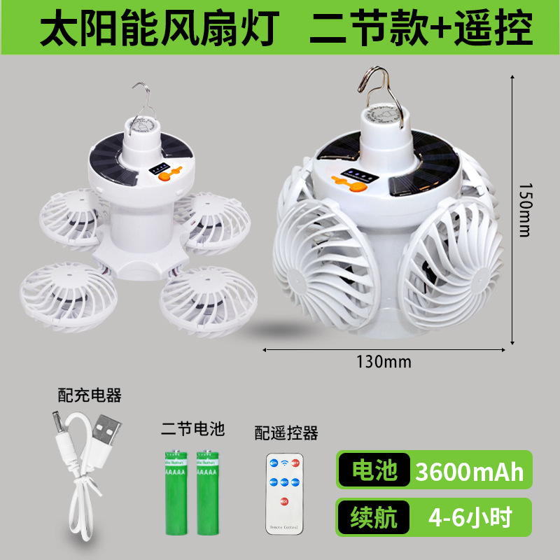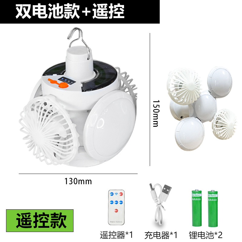 • 리모콘 태양광 구형 팬 라이트 [팬 4개 + 라이트 1개 3600mAh]