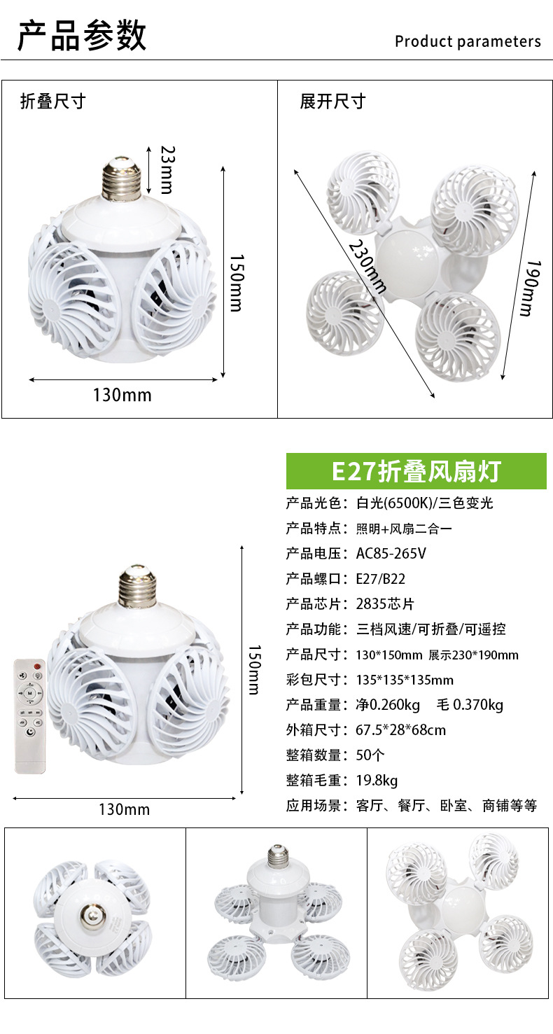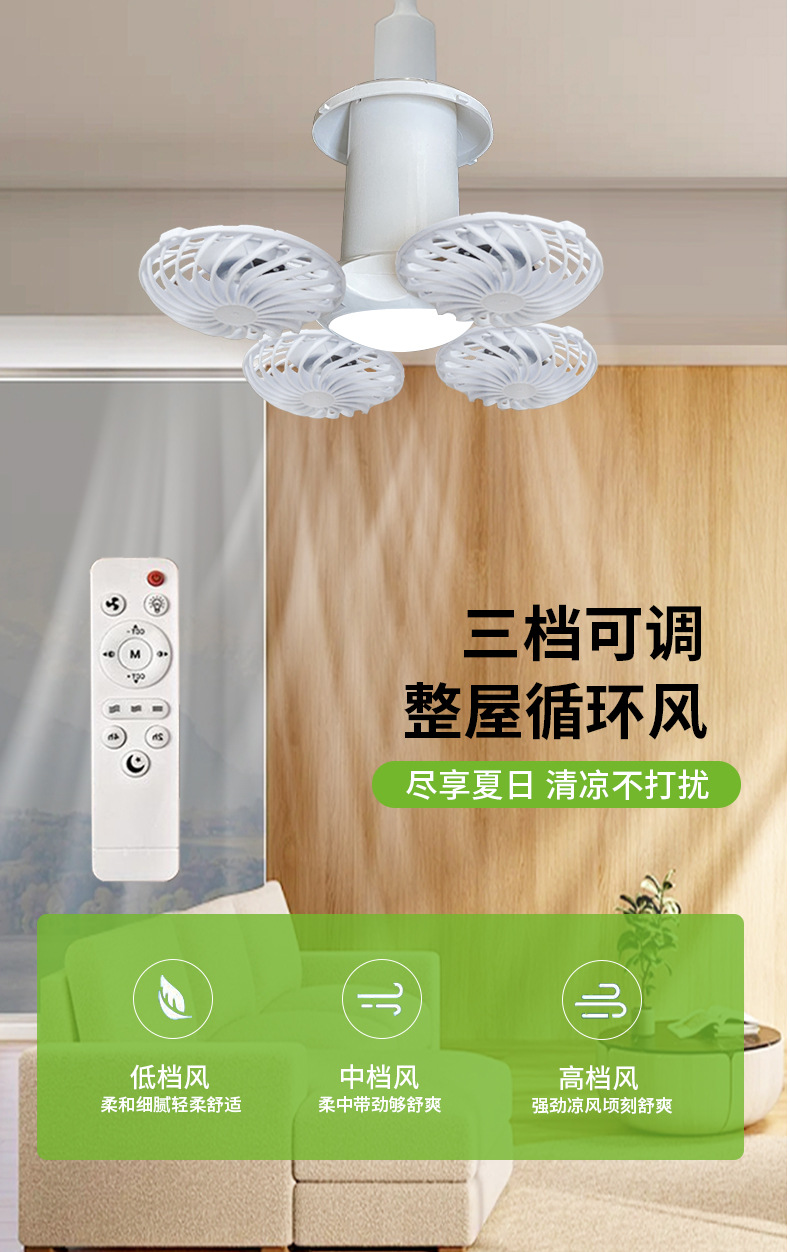 • E27 메인 모델 [리모컨 4팬 + 2색 조명 1개]
