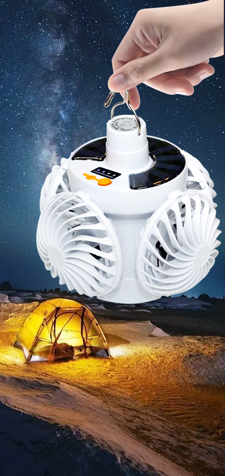 • 태양광 구형 팬 라이트 [팬 4개 + 라이트 1개 3600mAh]