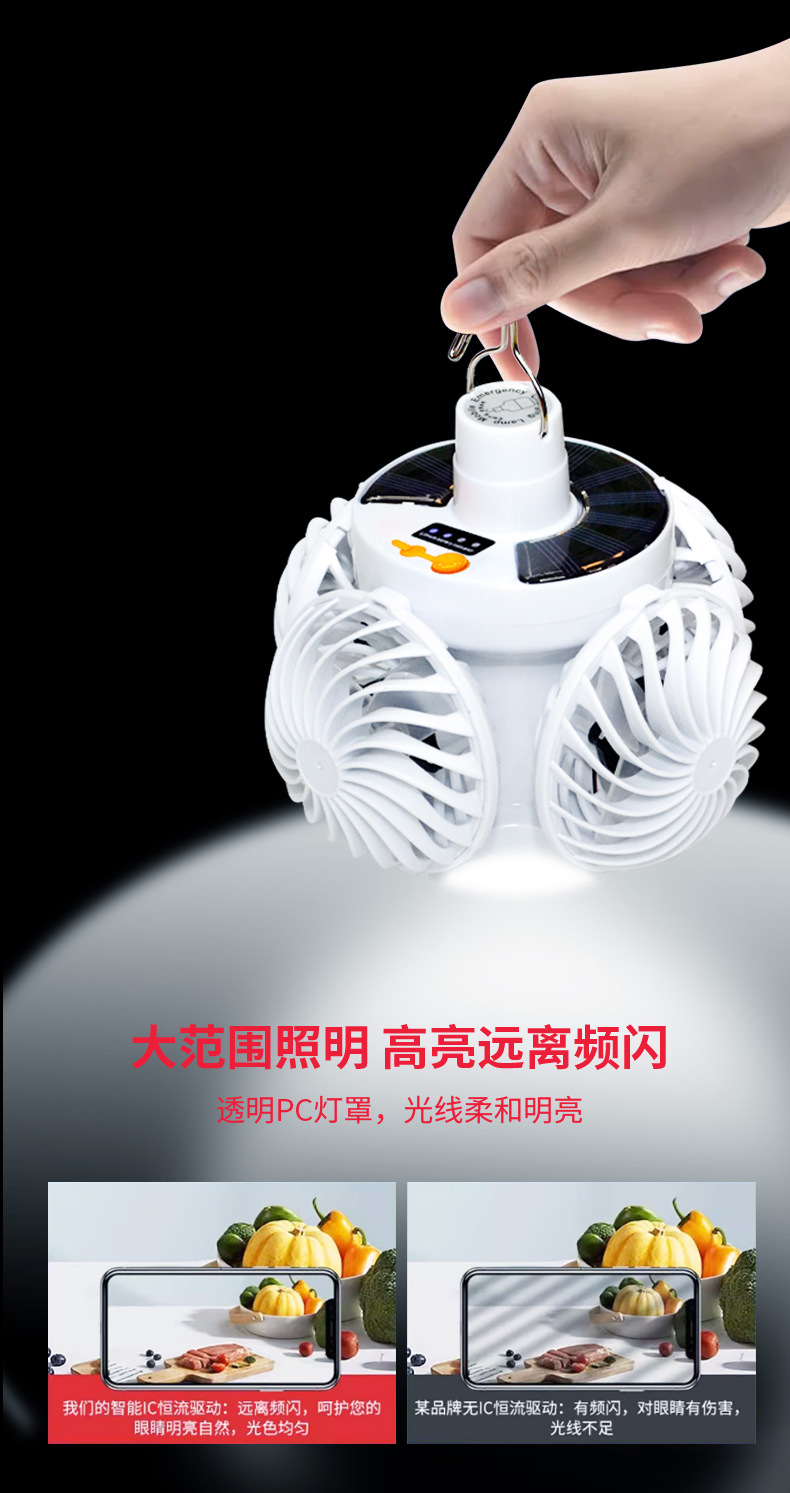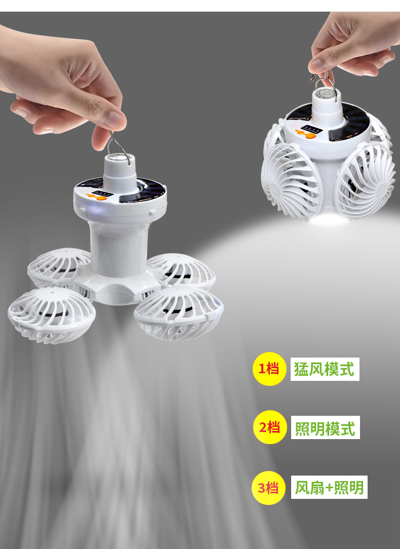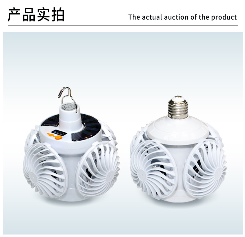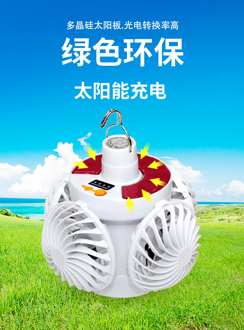 태양 광 축구 팬 빛 야외 LED 전구 태양 캠핑 팬 빛 충전식 벽 장착 팬 빛