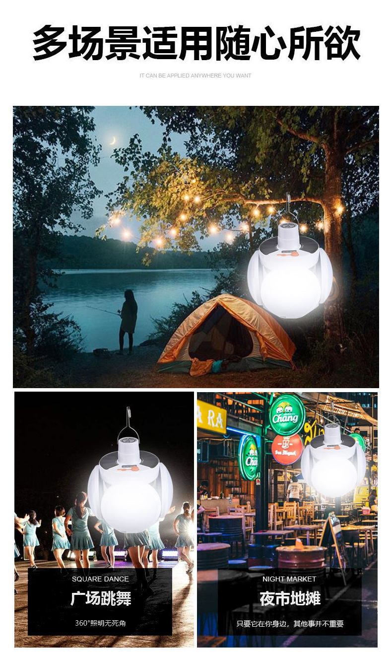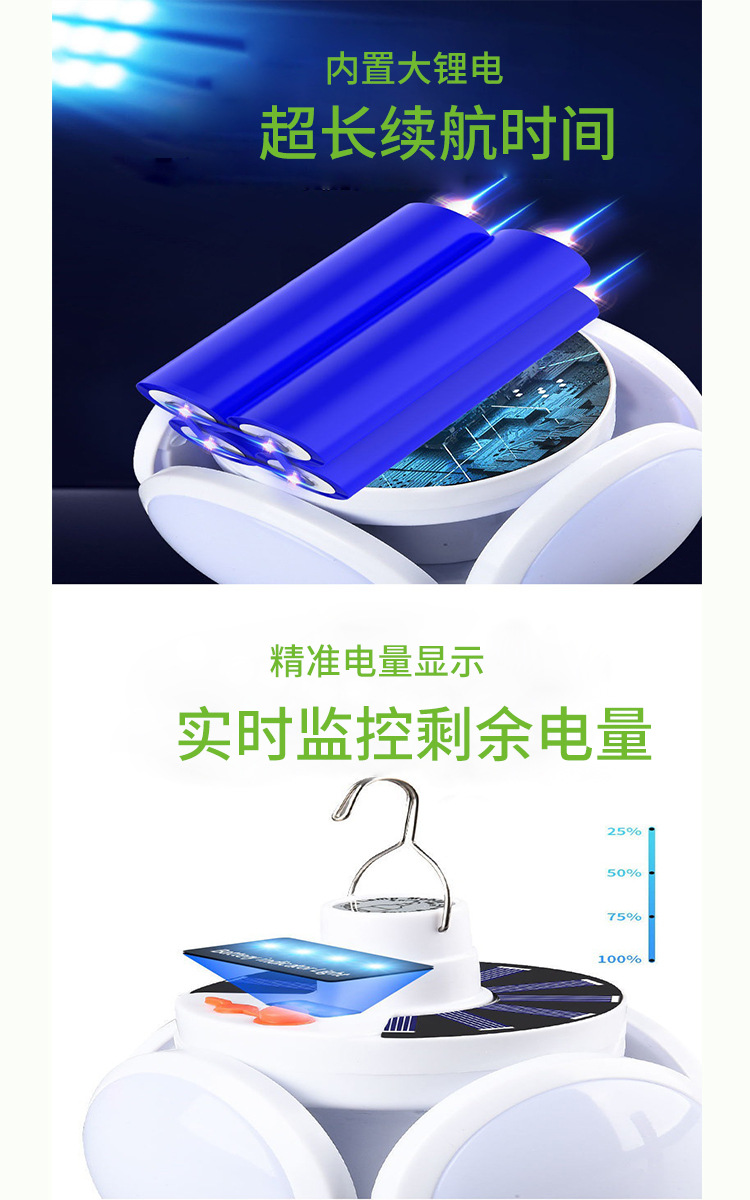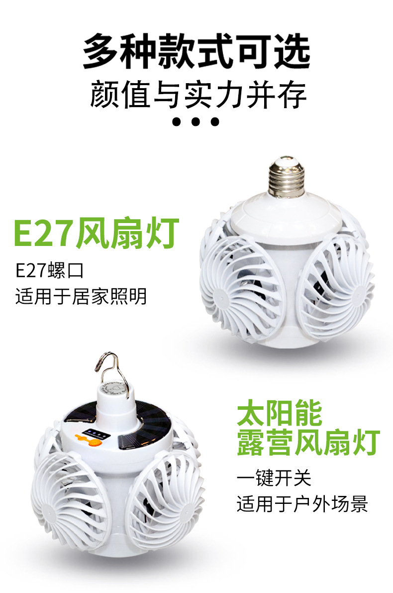 태양 광 축구 팬 빛 야외 LED 전구 태양 캠핑 팬 빛 충전식 벽 장착 팬 빛