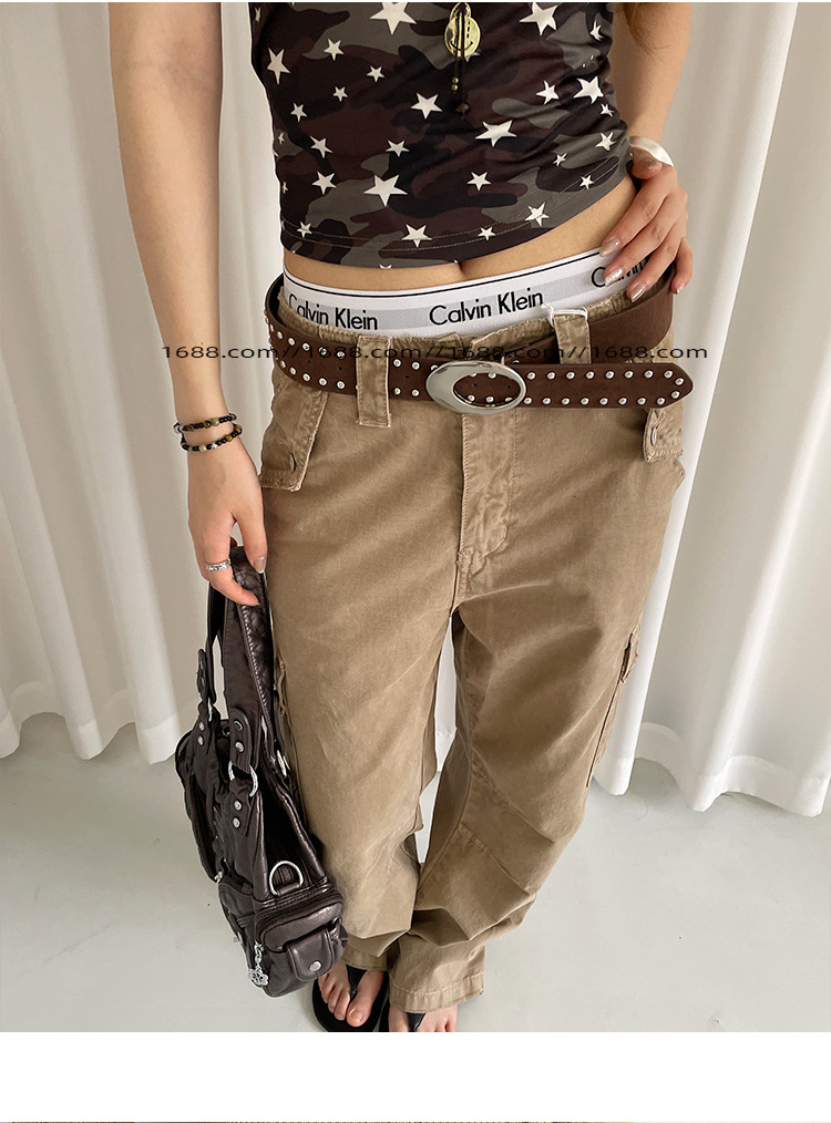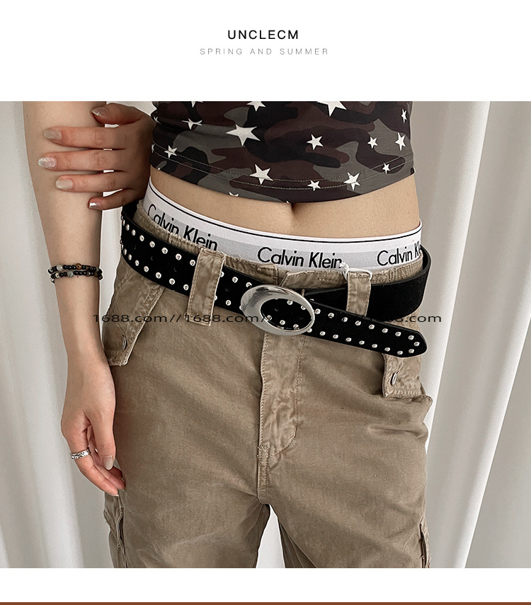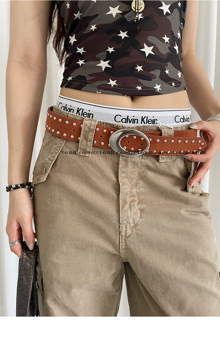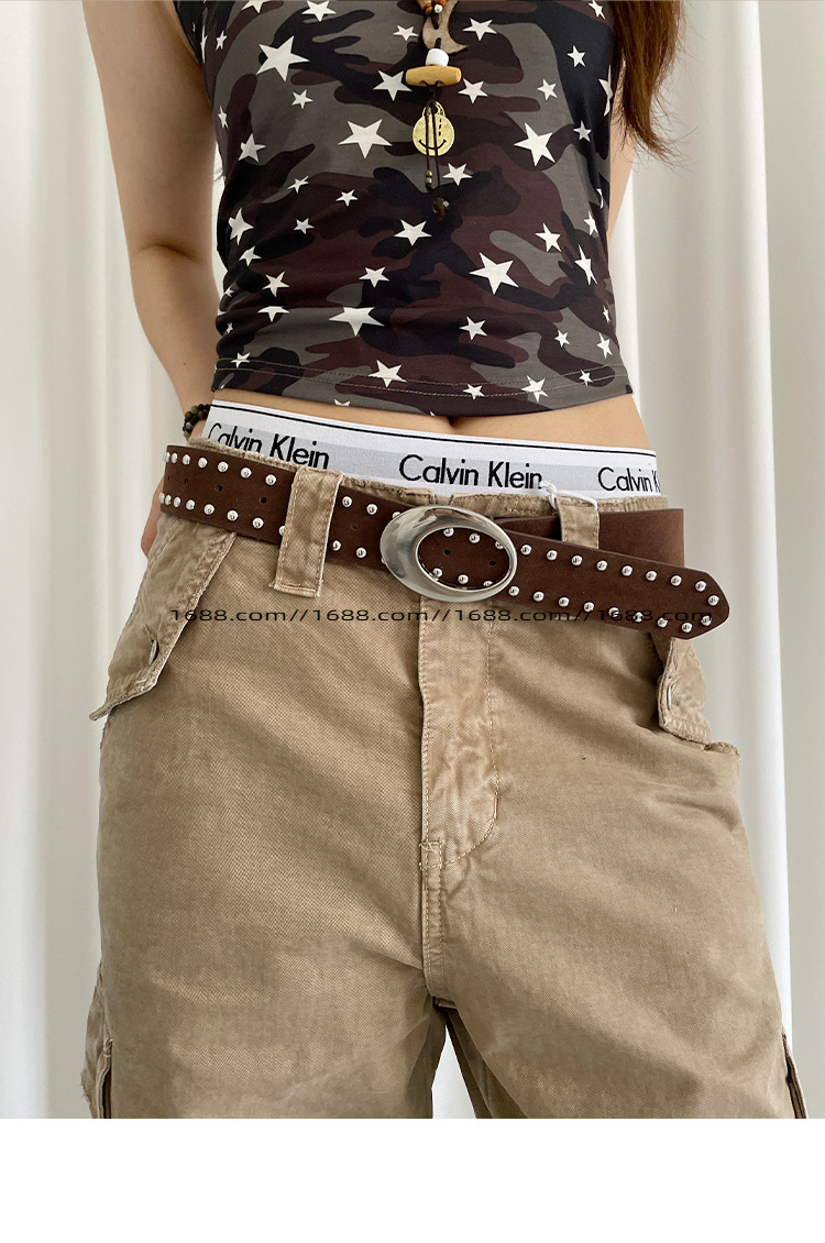 아메리칸 스타일 레트로 스웨이드 리벳 벨트 여성 디자인 센스 스파이스 걸 스타일 다크 브라운 벨트 맞춤형 올 매치 청바지 벨트스토어 가기