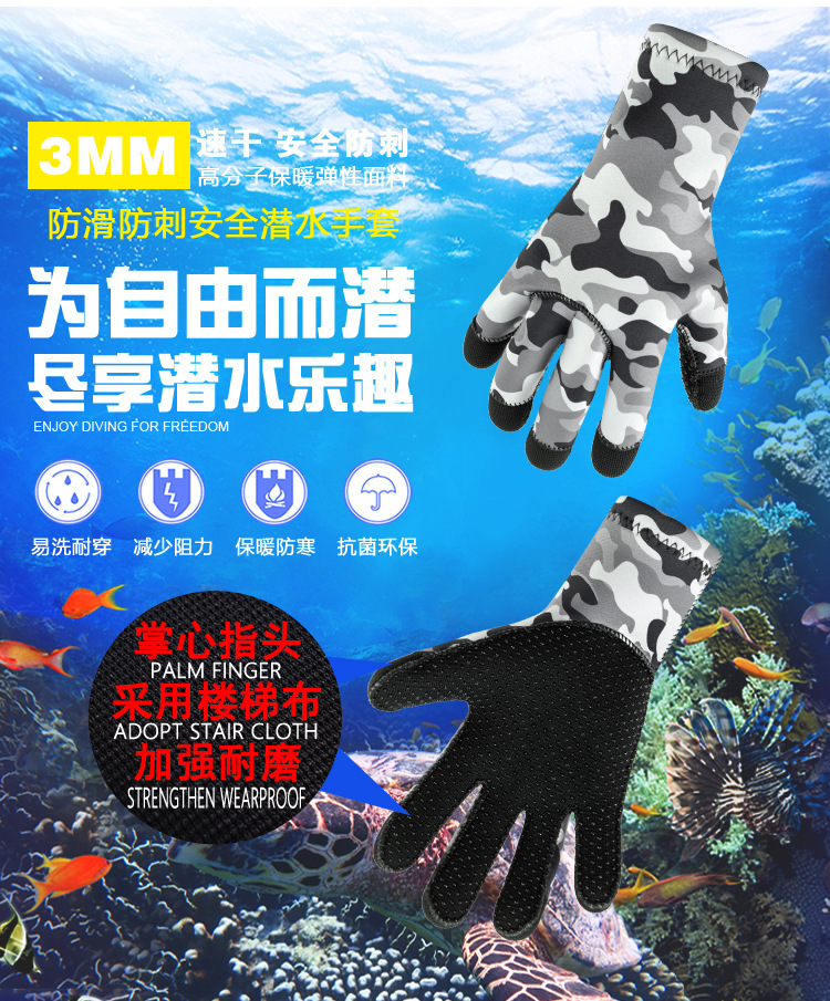 위장 3mm 수영 다이빙 장갑 남자의 미끄럼 방지 내마모성 손가락 끝 긁힘 방지 낚시 따뜻한 내한성 스노클링 장갑 여성스토어 가기