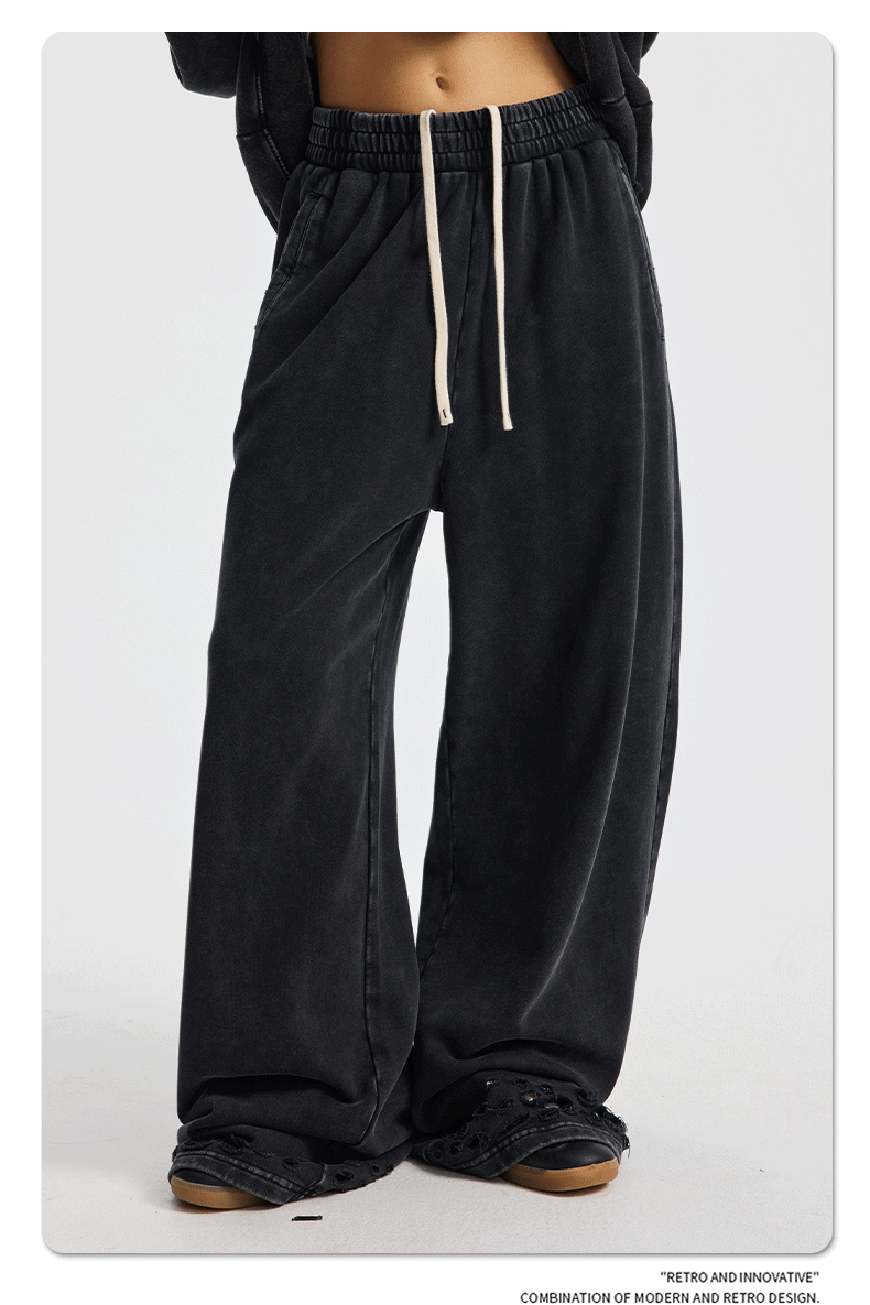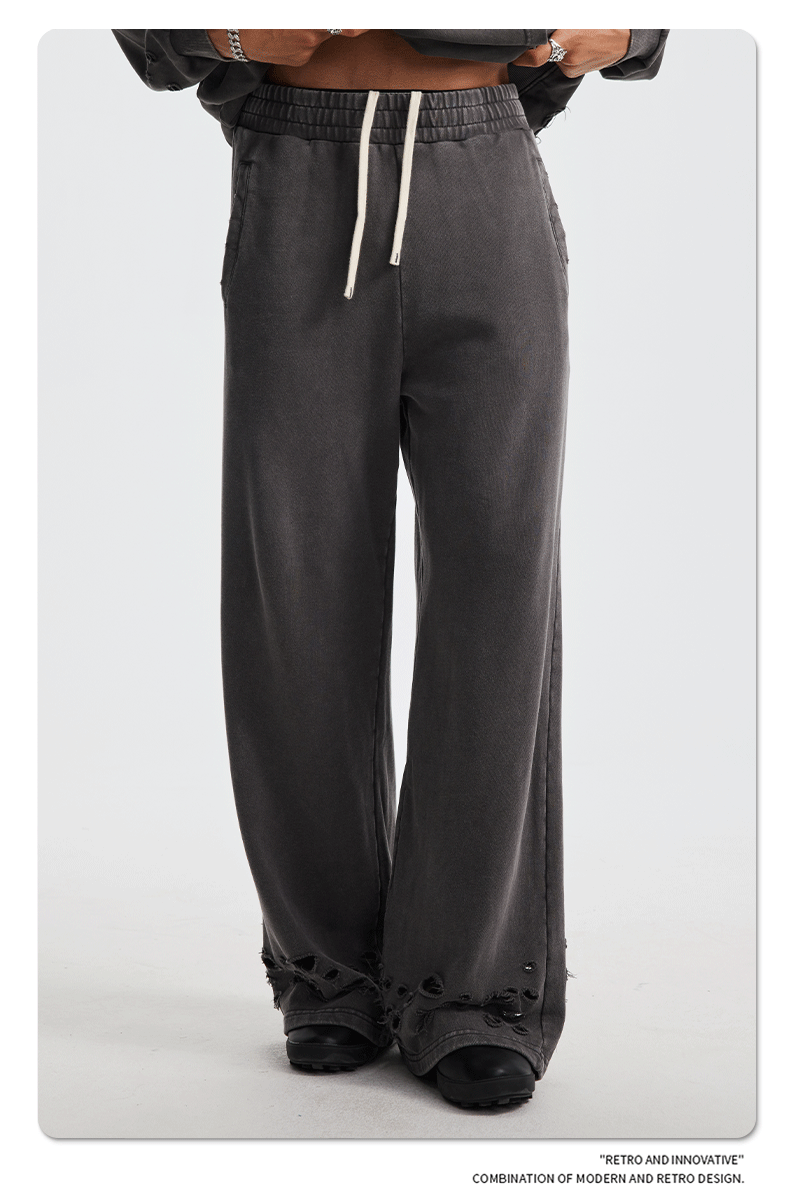 慵懒风炒雪花做旧阔腿裤 2025秋冬新品 高街割烂磨边宽松长裤 工厂批发;