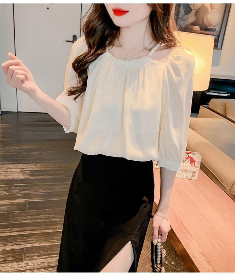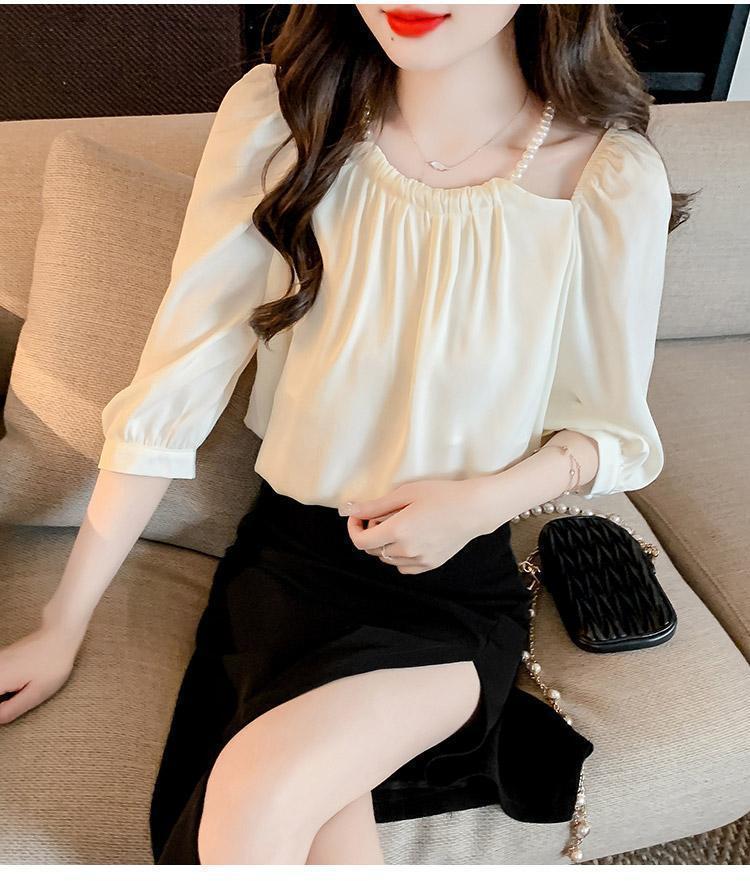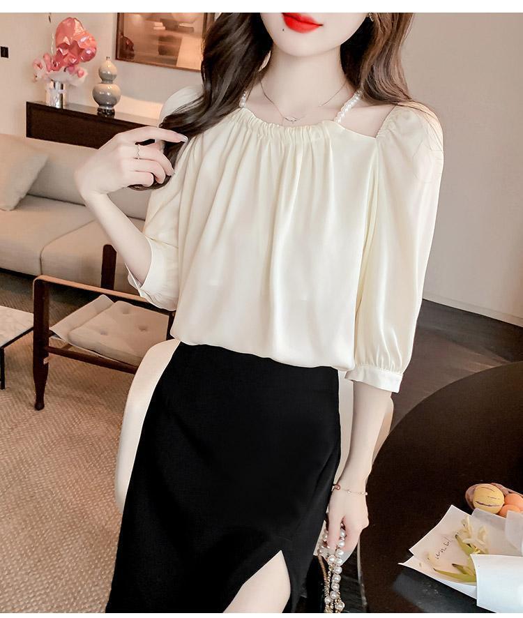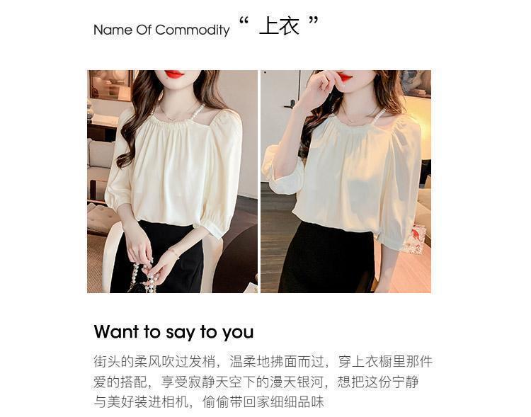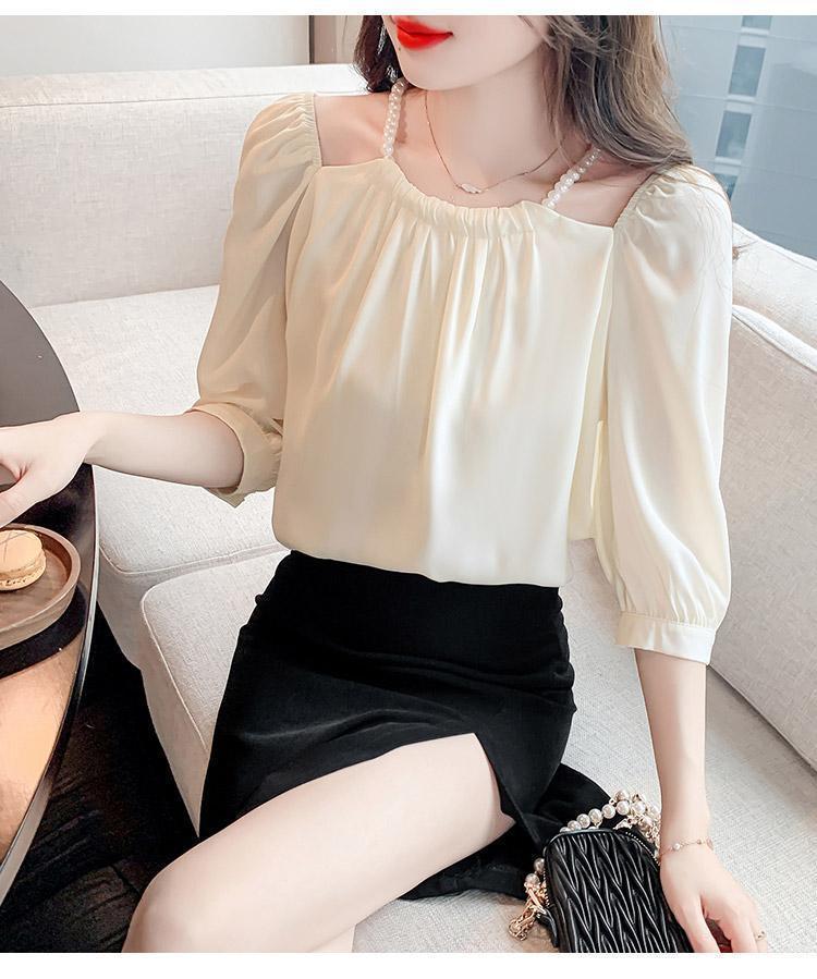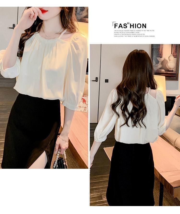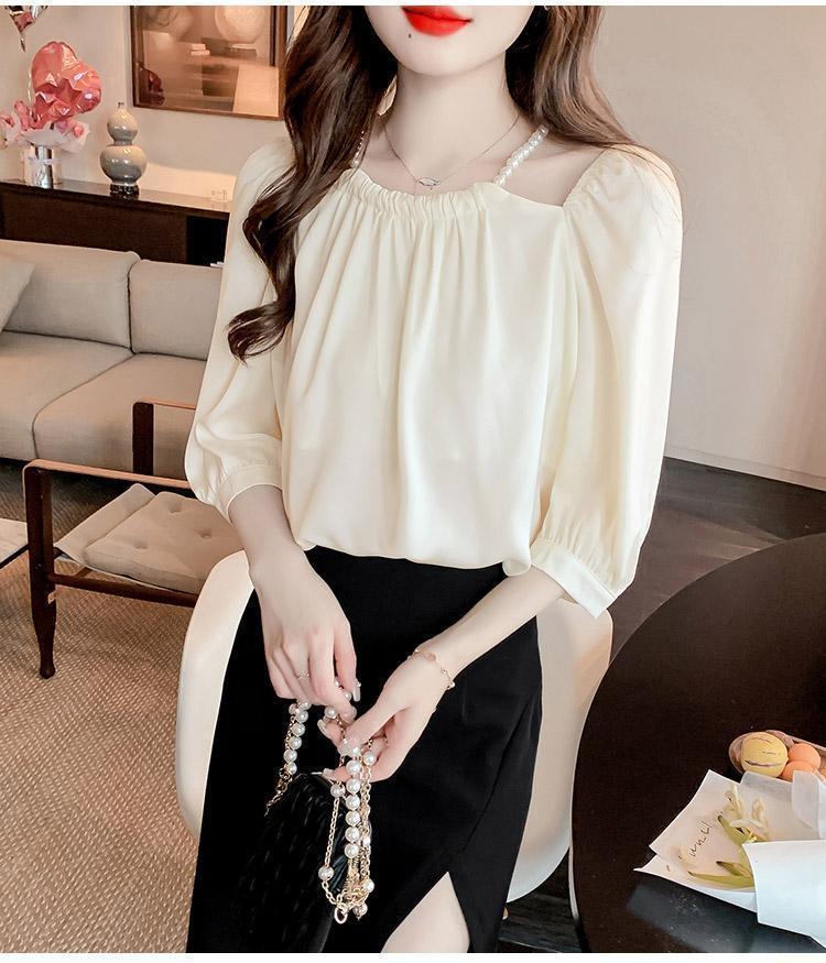 2024 봄 여름 새로운 스타일 섹시한 홀터넥 긴팔 쉬폰 셔츠 여성 여름 기질 다용도 7부 소매 셔츠 탑스토어 가기