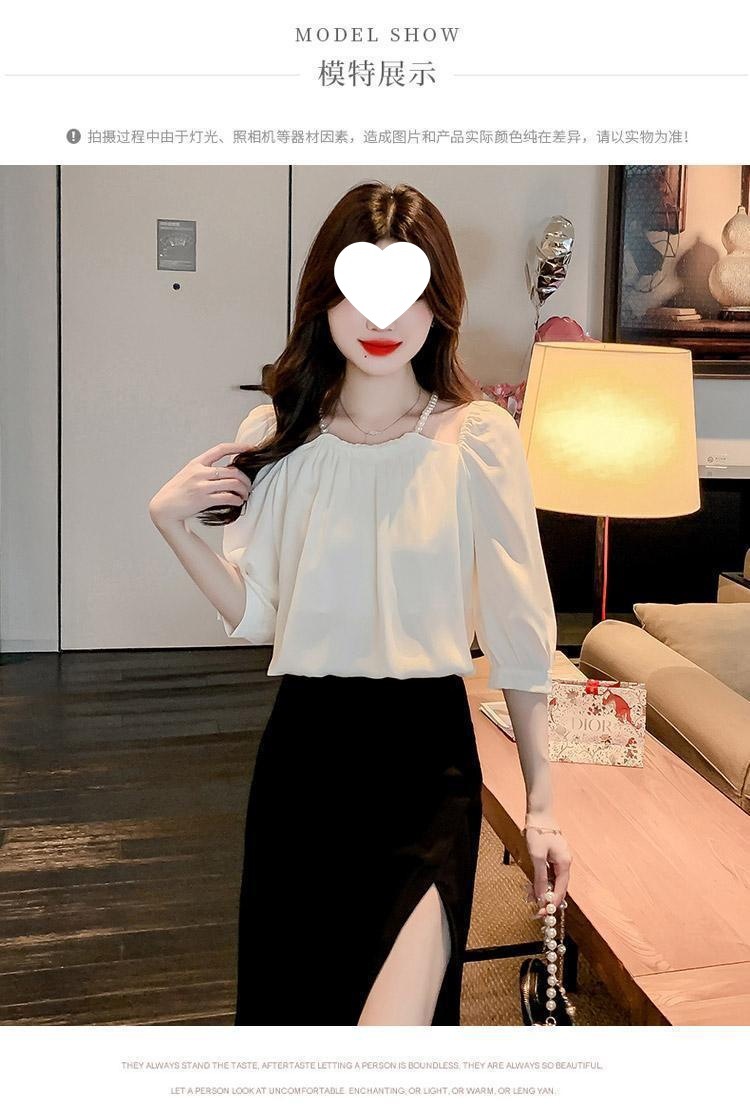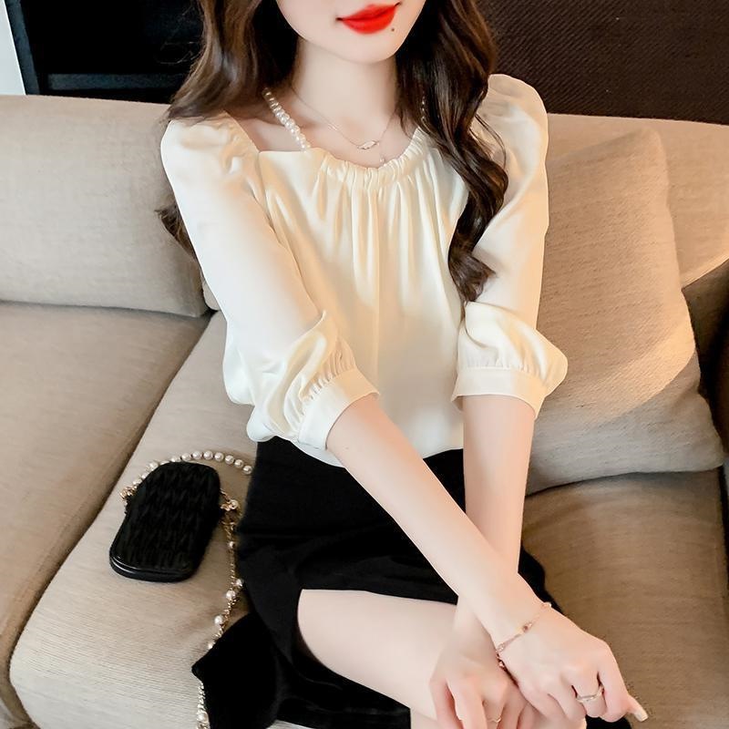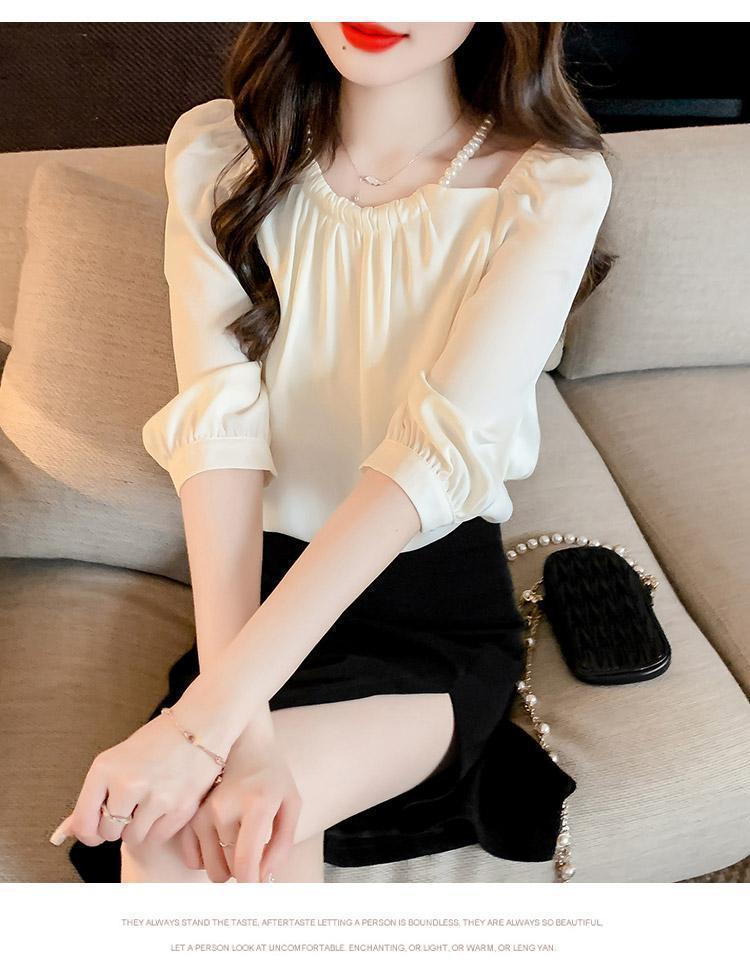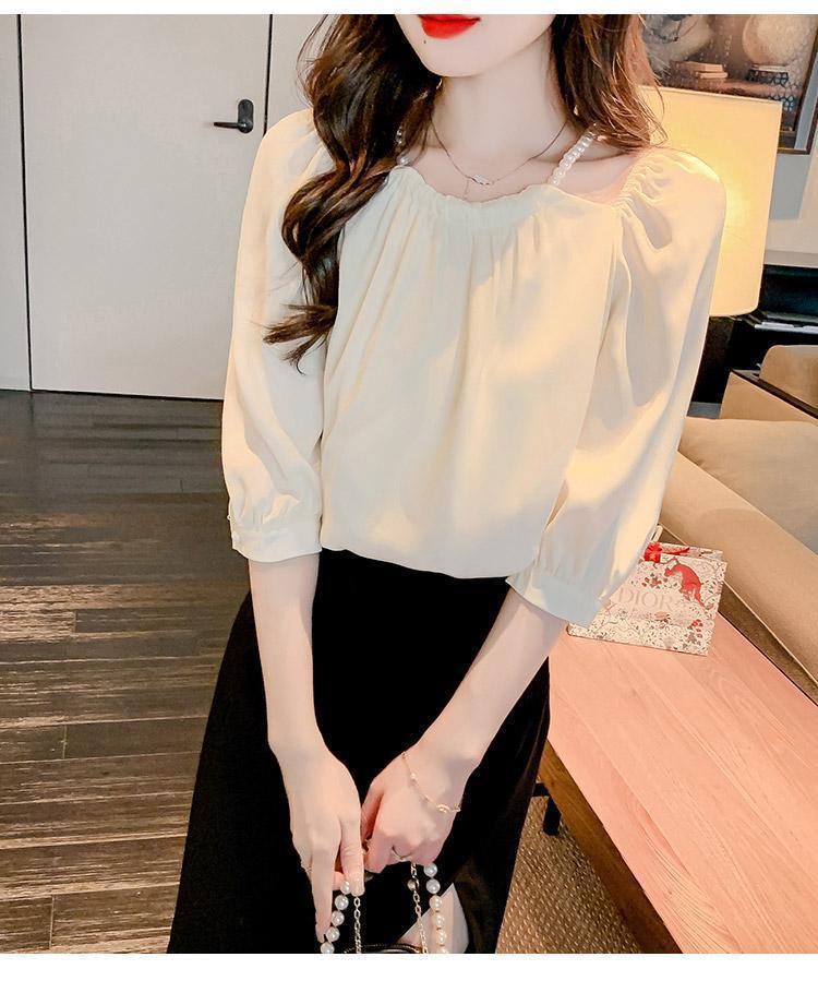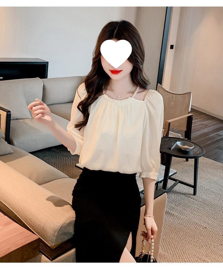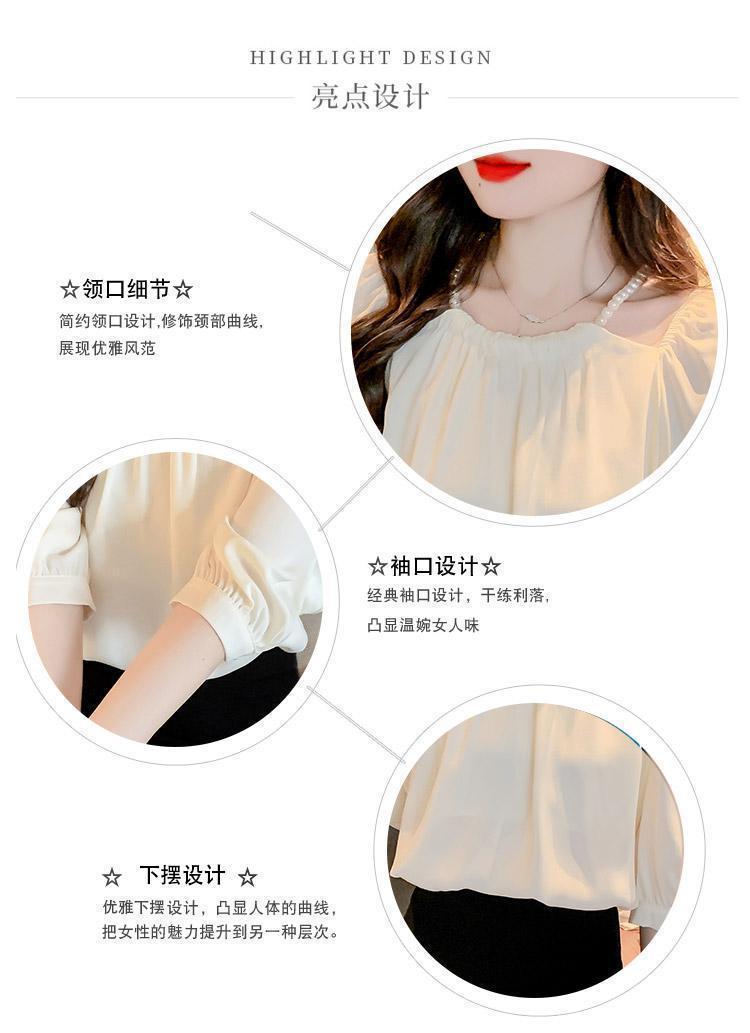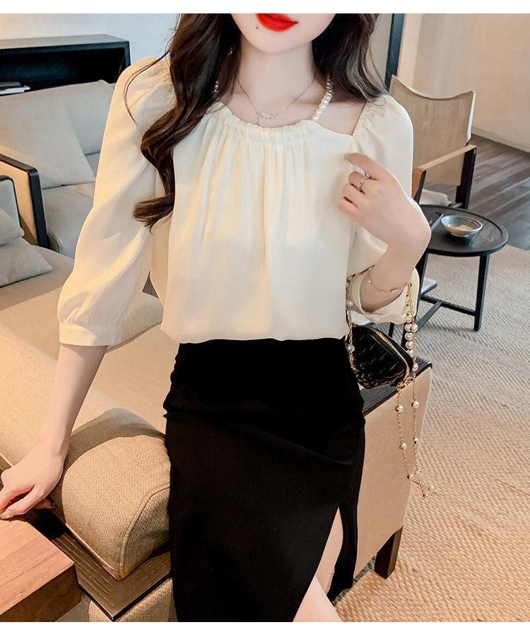 2024 봄 여름 새로운 스타일 섹시한 홀터넥 긴팔 쉬폰 셔츠 여성 여름 기질 다용도 7부 소매 셔츠 탑스토어 가기